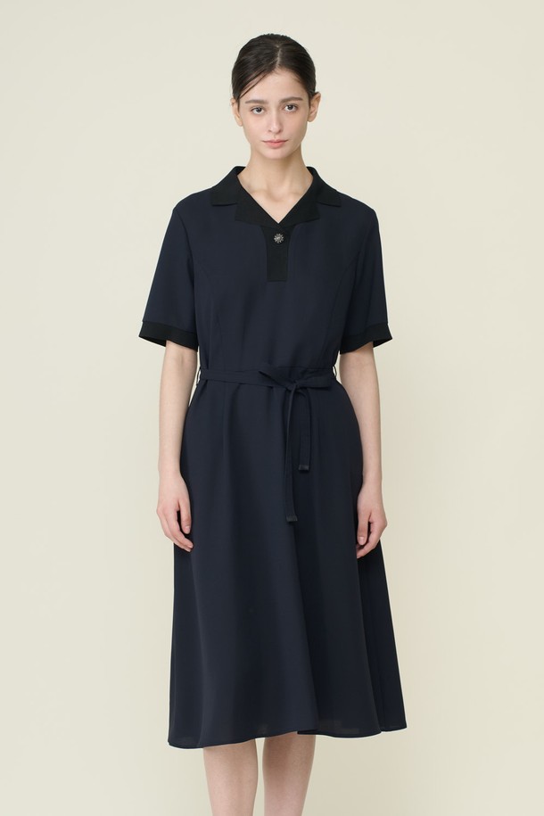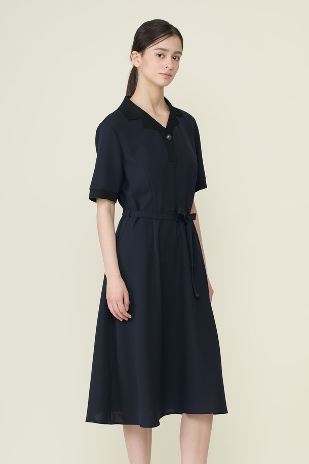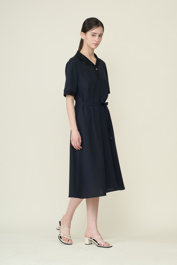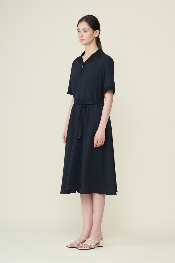 [26SU] 니트카라 패치 플레어 원피스 - DARK NAVY B6B4O62856