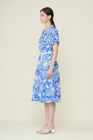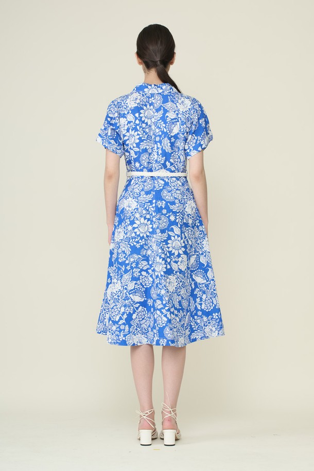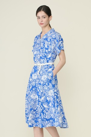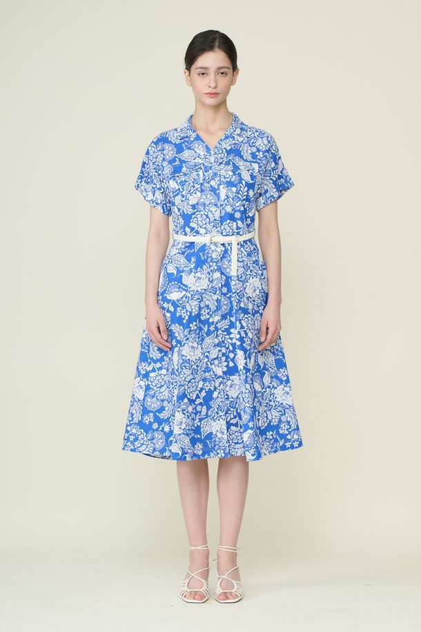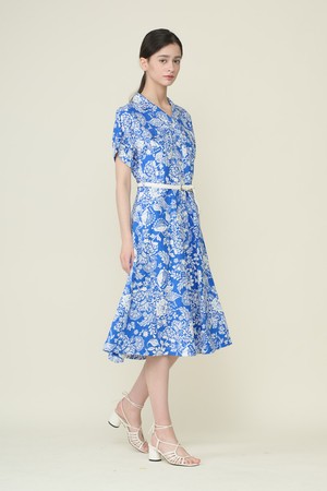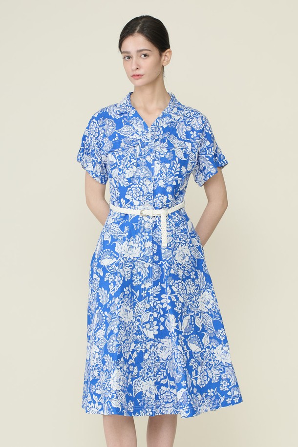 [26SU] 벨티드 프린트 원피스 - M BLUE B6B4O62653