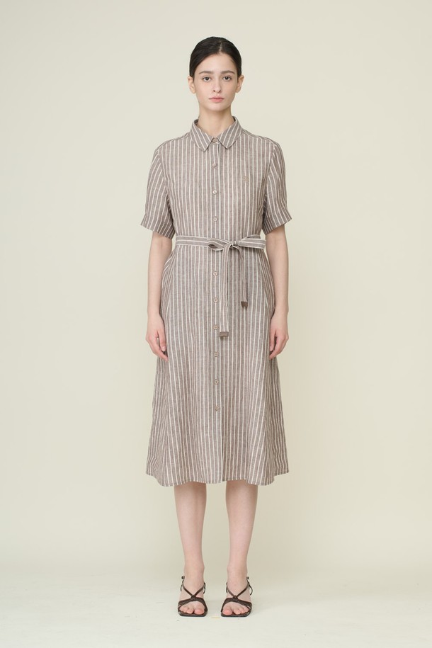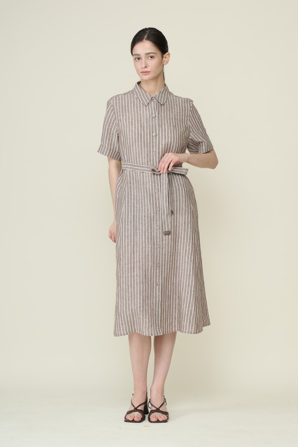 [26SU] 카라형 스트라이프 원피스 - BROWN B6B4O62174