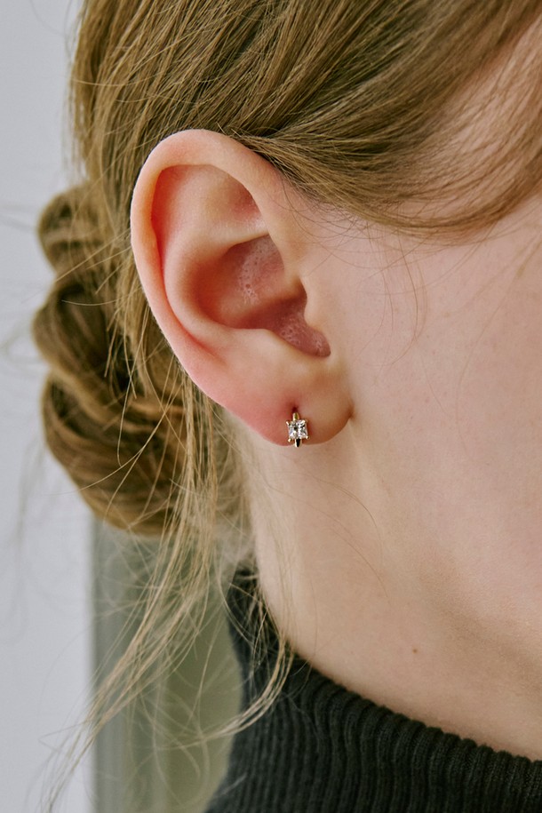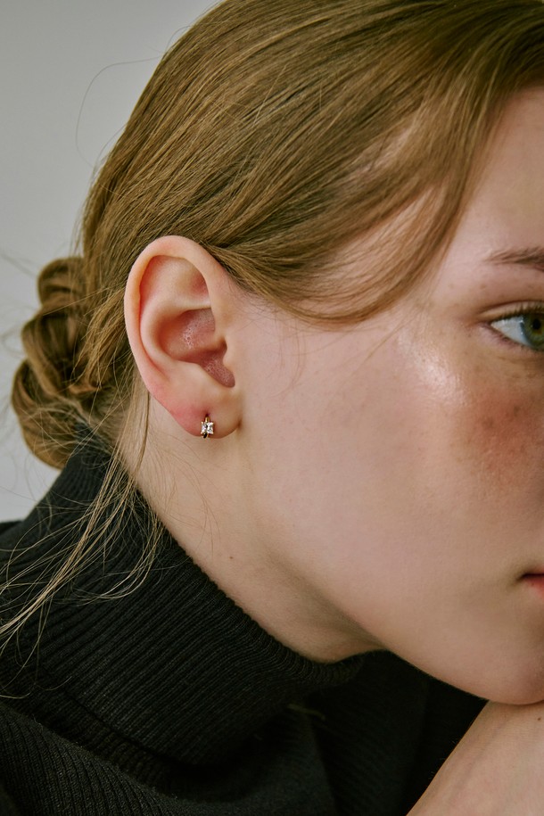 14k 프레임 큐빅 원터치 링 귀걸이