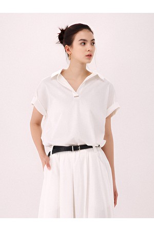 [26ss] Half Sleeve Glossy Blouse _Ivory