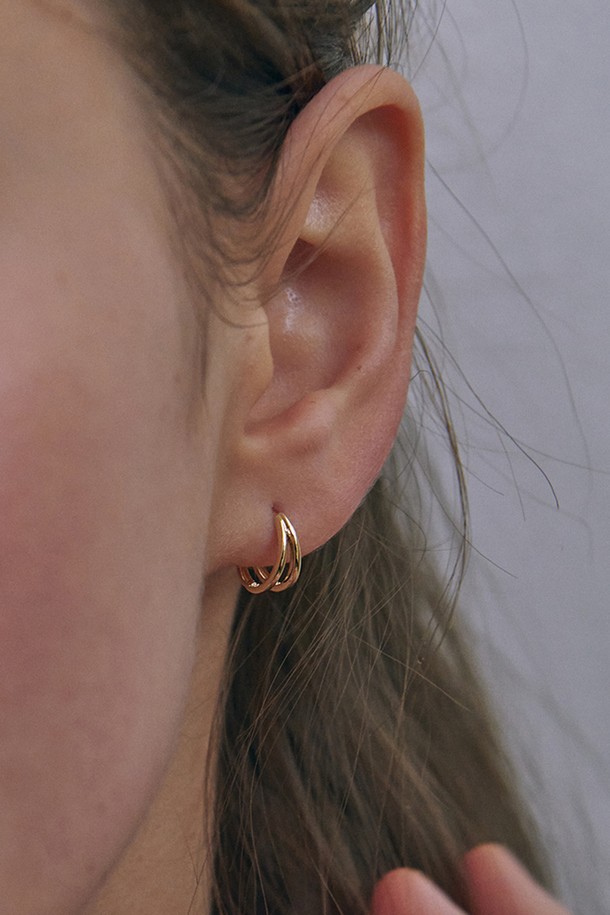 14k 투 라인 원터치 링 귀걸이