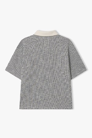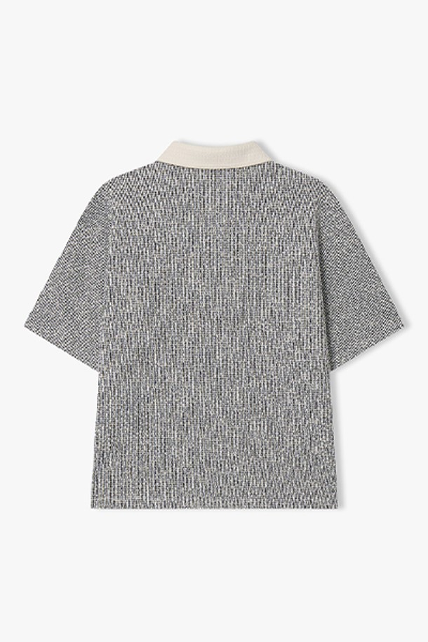 [리버클래시][26SS] LMM41725 블랙화이트 트위드 하프 칼라 티셔츠