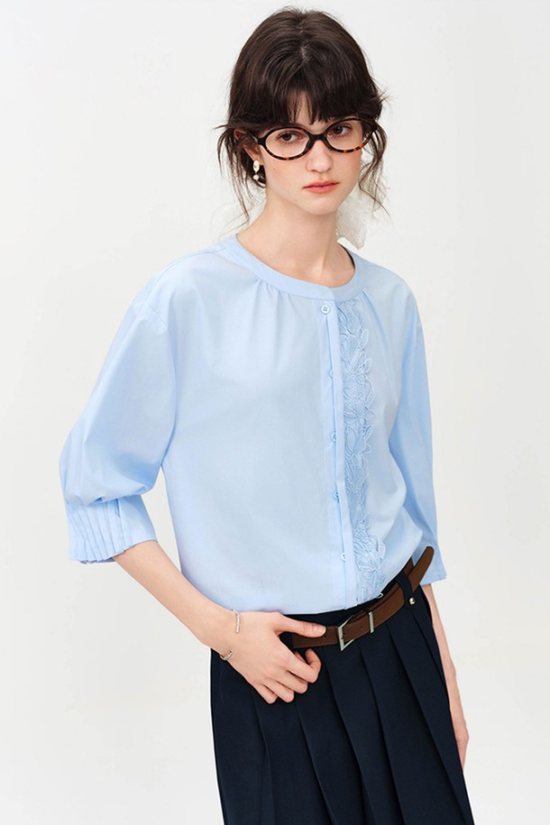 Lace panel button shirt_2color