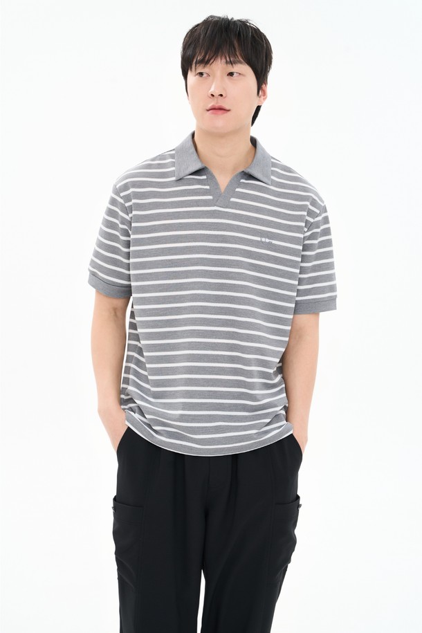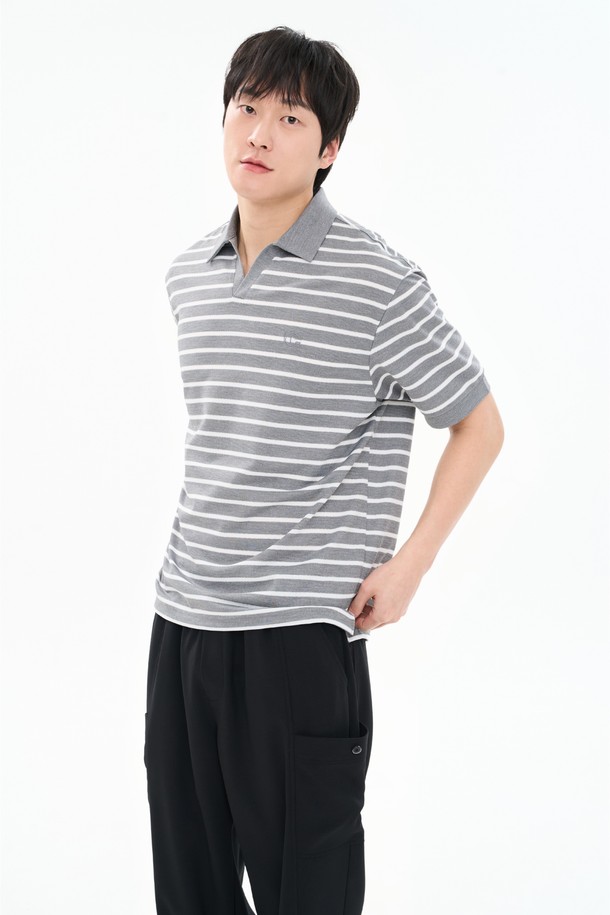 남성 여름 강연 스트라이프 카라 티셔츠 출근룩 CXS26MKKT303 GRY