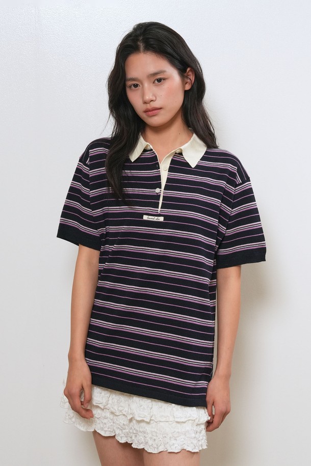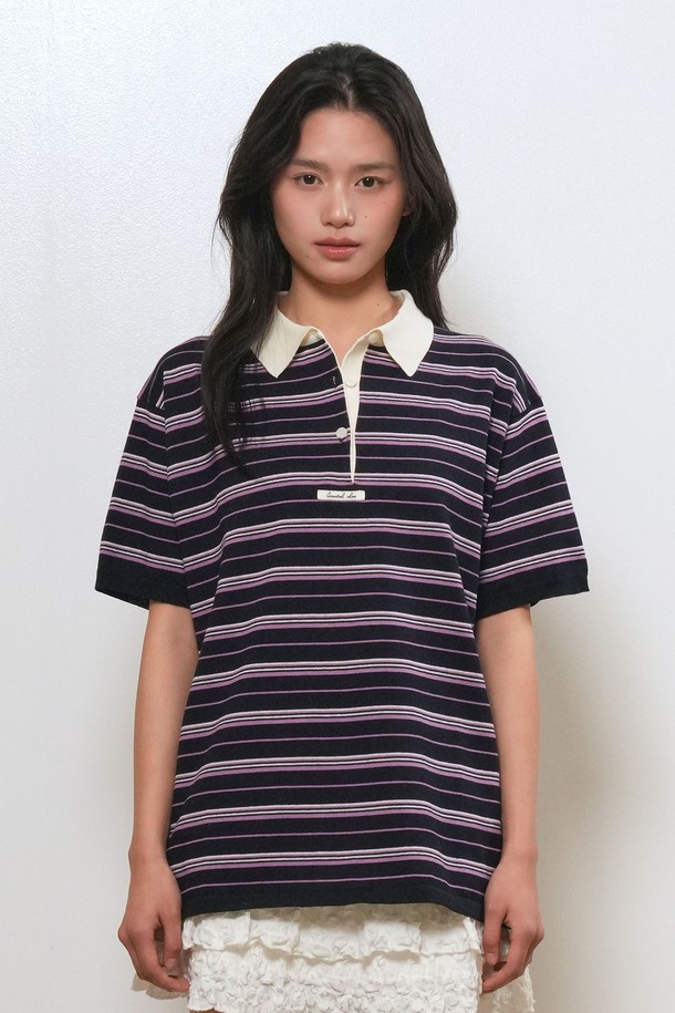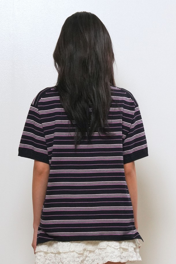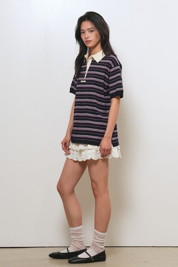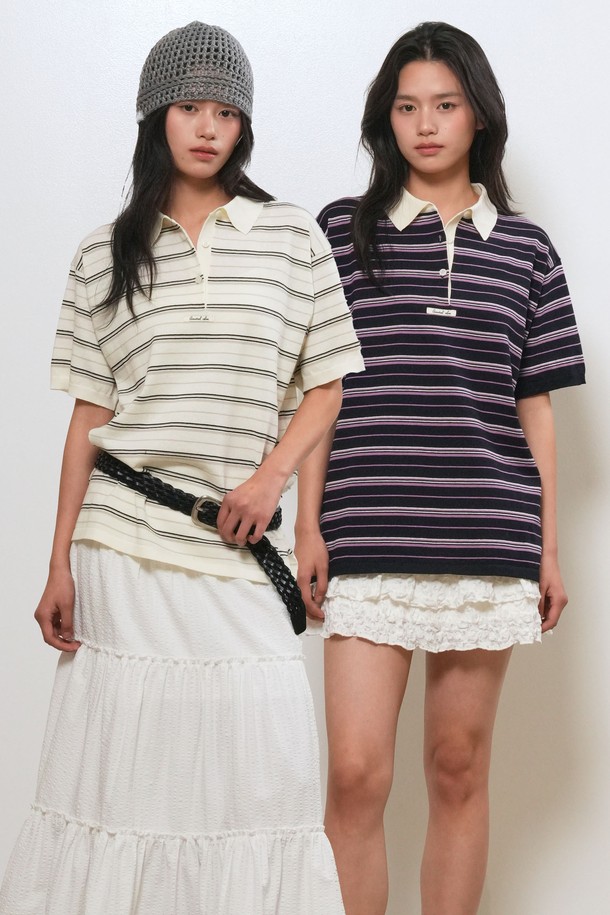 [26SS] WOMAN 스트라이프 루즈 카라 하프 니트 [3COL] / GF2LKP530