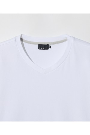 [BLACK LABEL] 수피마 브이넥 반팔 티셔츠_화이트 (세미오버핏)_STSXB81NSW