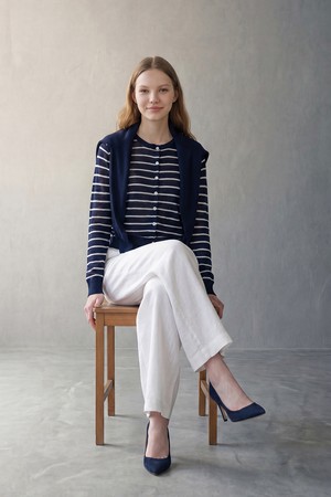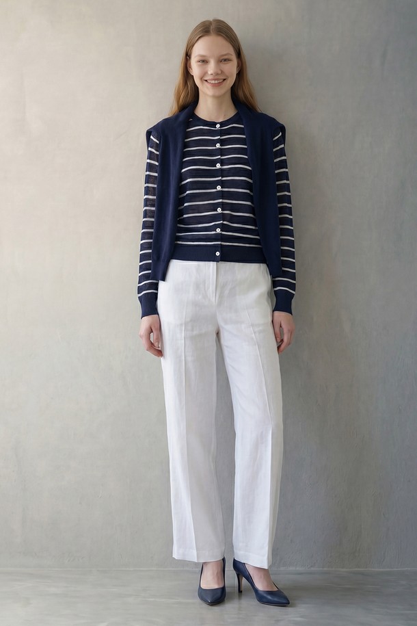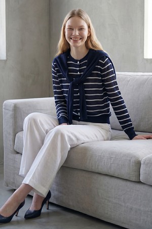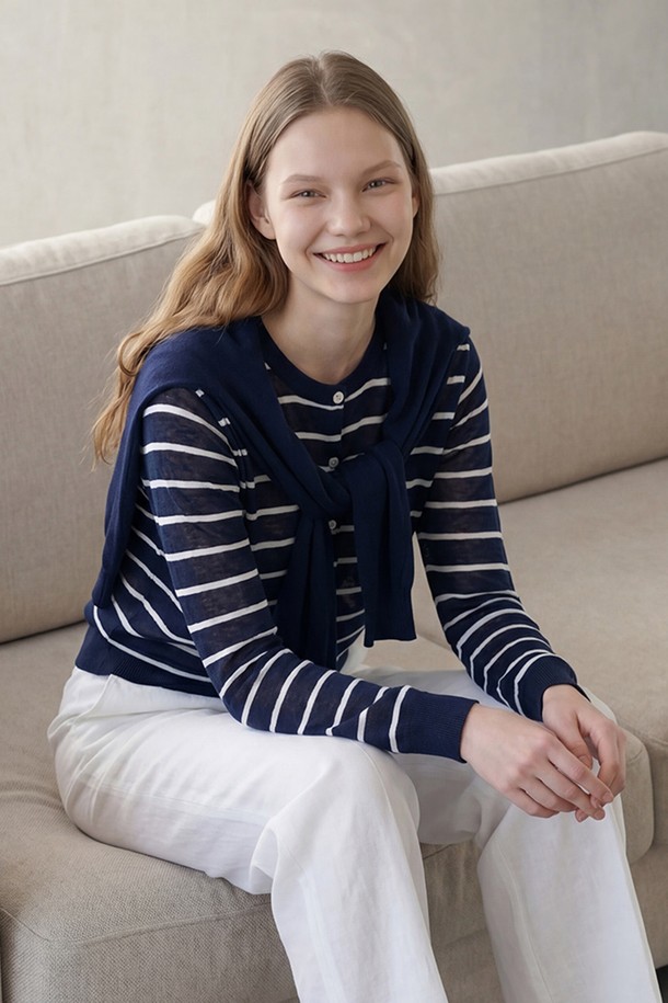 [26SU] 스트라이프 레이어드 니트 가디건 - NAVY B6M5G99055