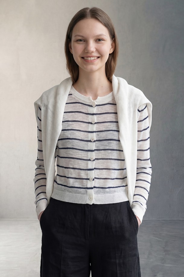 [26SU] 스트라이프 레이어드 니트 가디건 - WHITE B6M5G99010