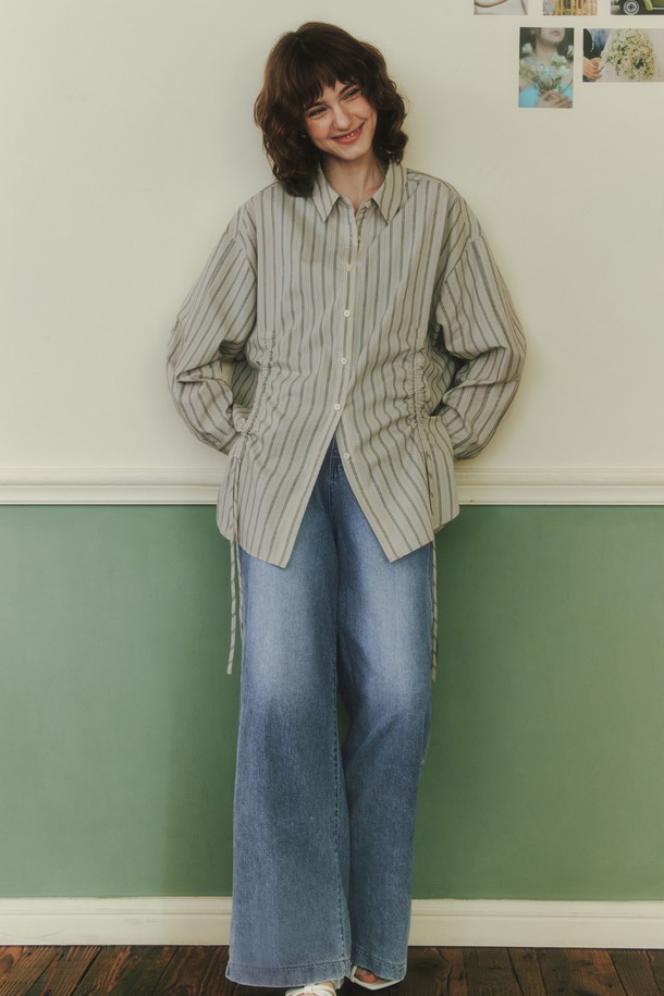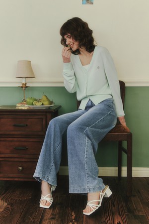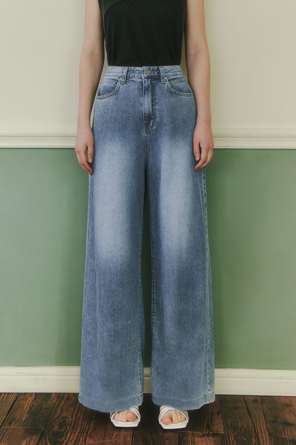 포인트 워싱 와이드 데님 팬츠 / 인디고