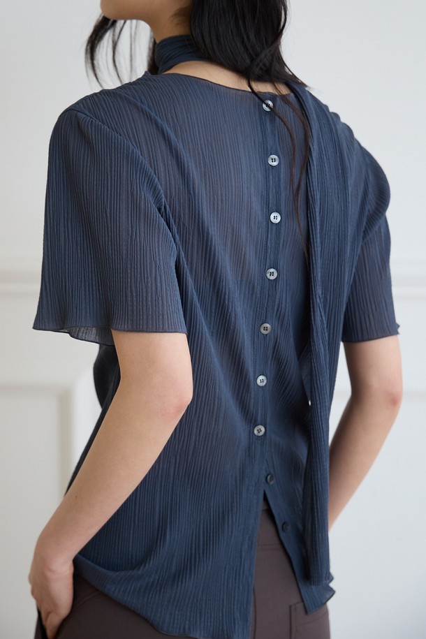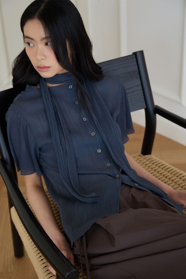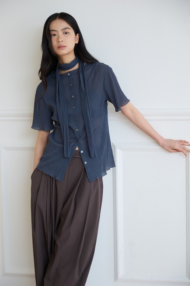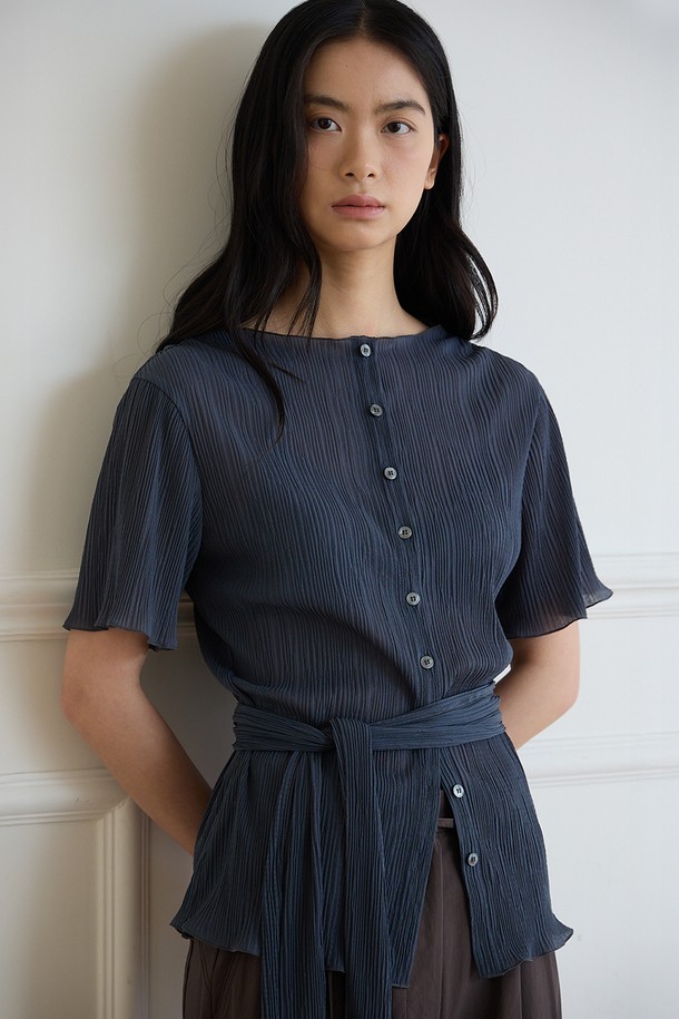 플리츠 레이어 블라우스 [차콜]