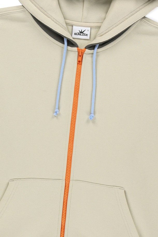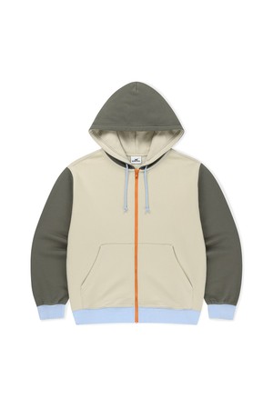Block Zip Up Hoodie Ivory