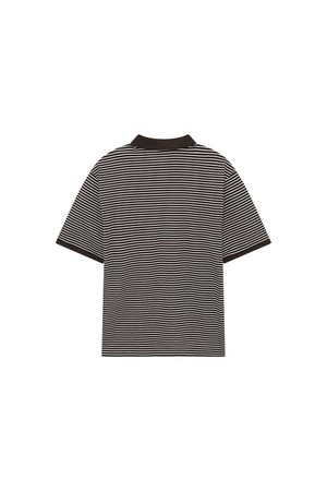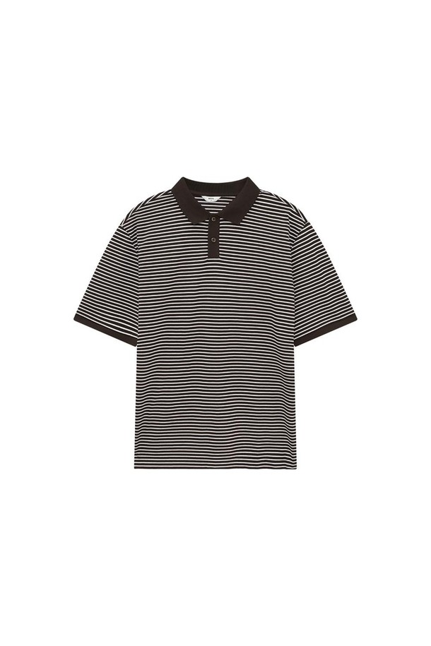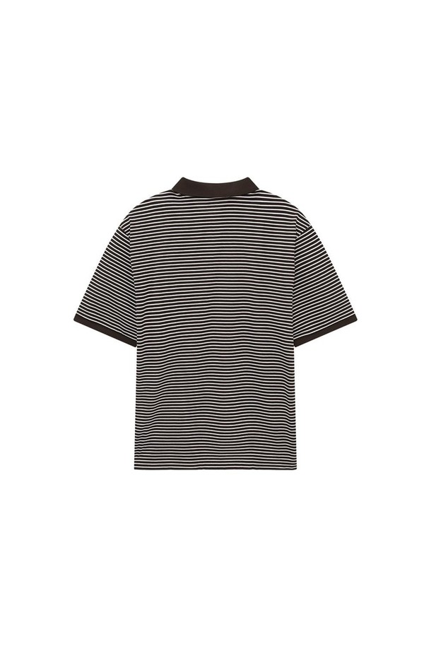 면혼방 스트라이프 카라 반팔티셔츠 브라운