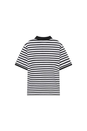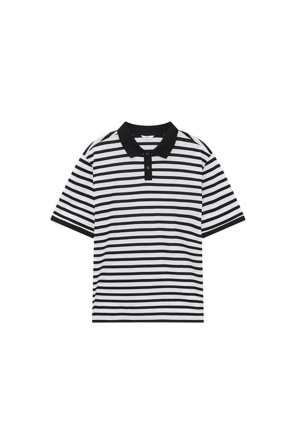 면혼방 스트라이프 카라 반팔티셔츠 블랙