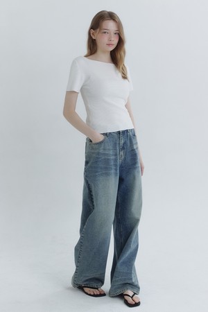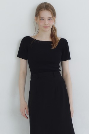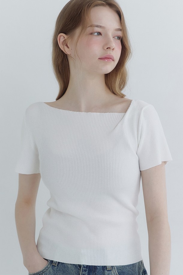 미엘 폴드 오버 넥라인 슬림 니트