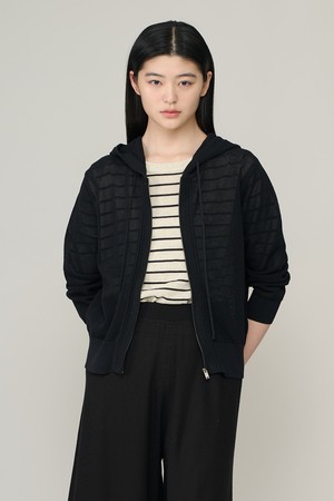 [26SU] 메쉬 후드 집업 가디건 - BLACK A6M4K11099