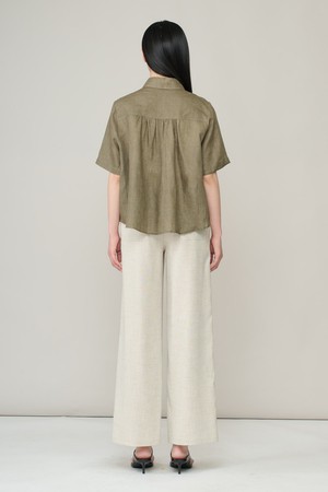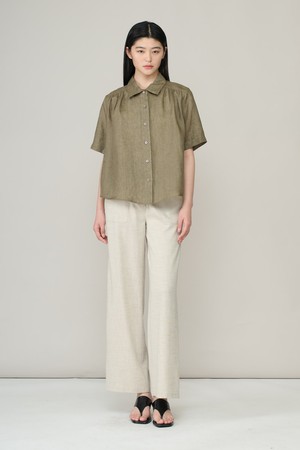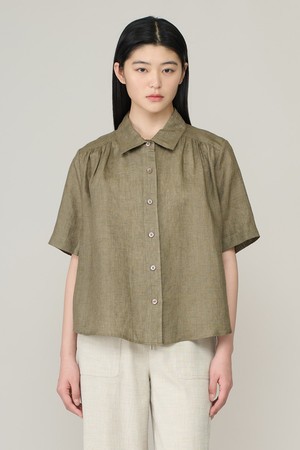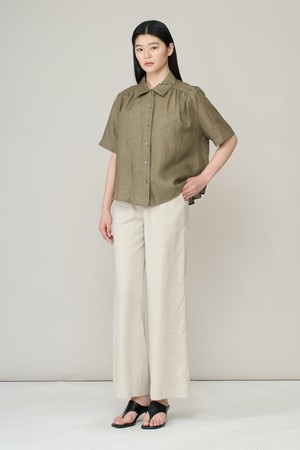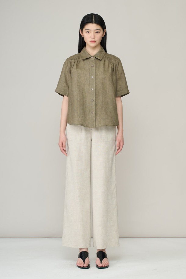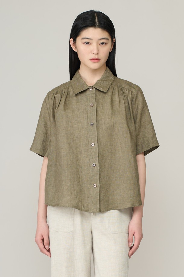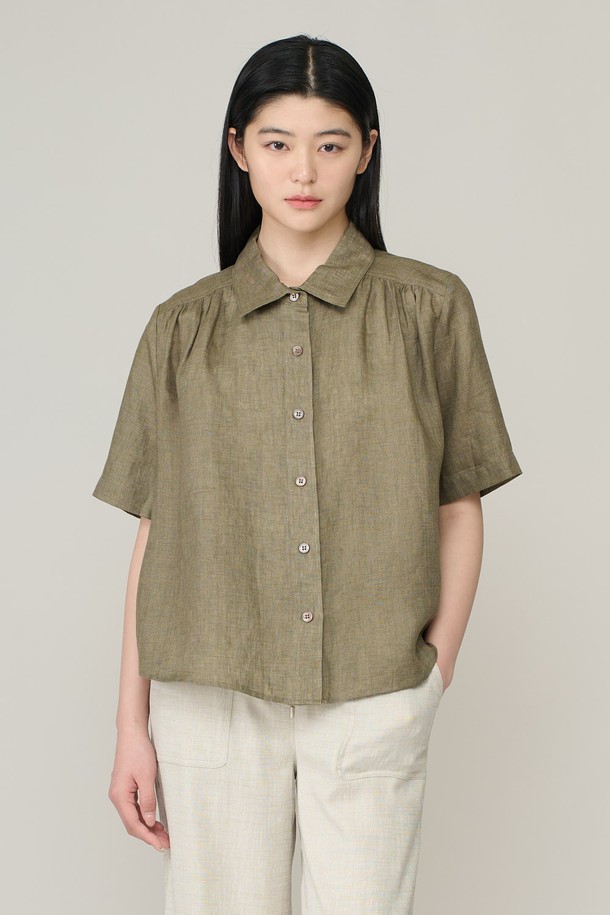 [26SU] 린넨 하프슬리브 블라우스 - KHAKI A6M4B43645