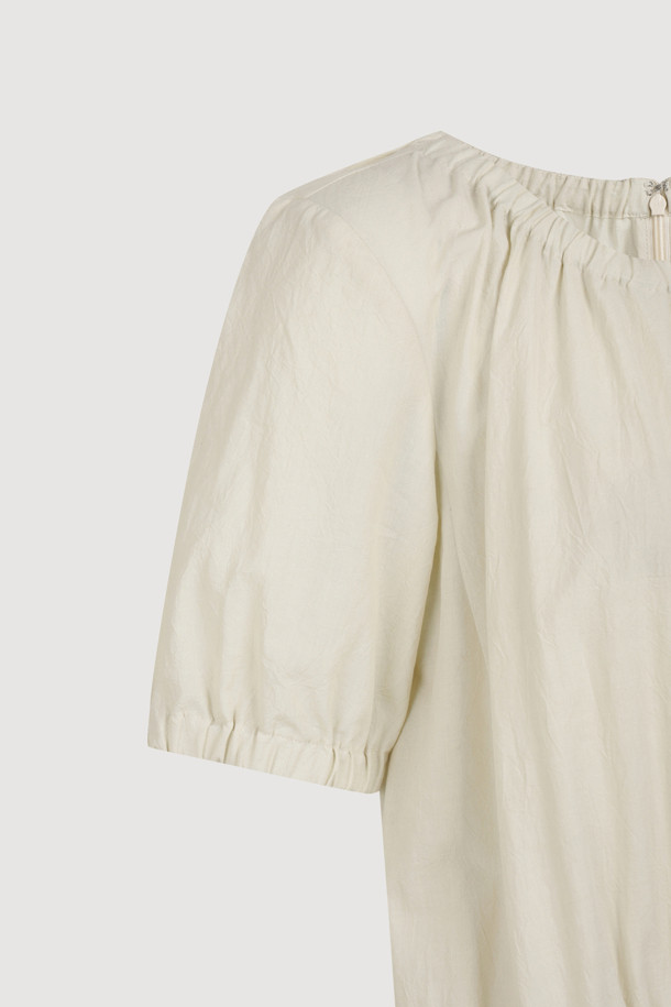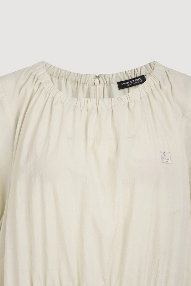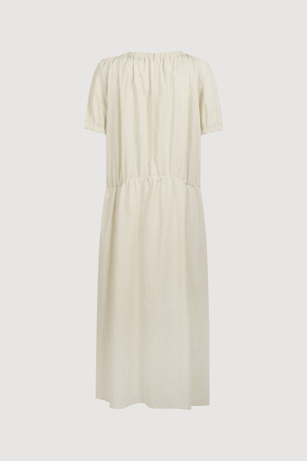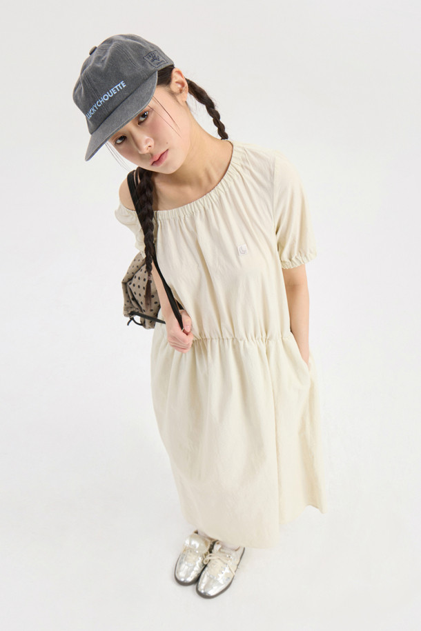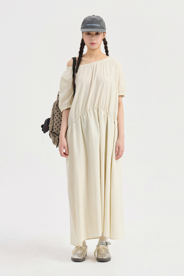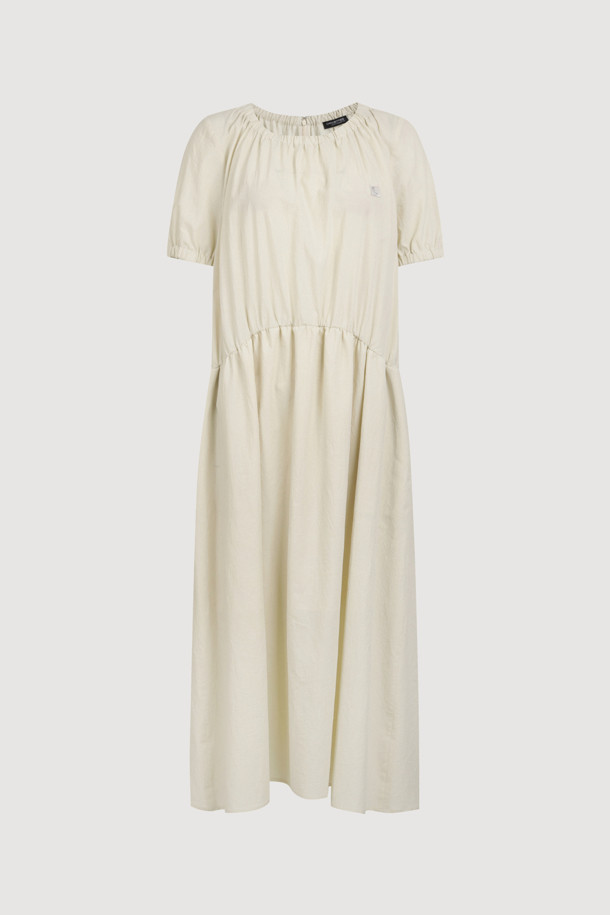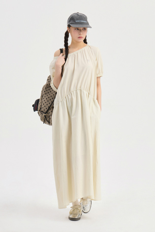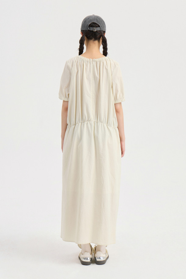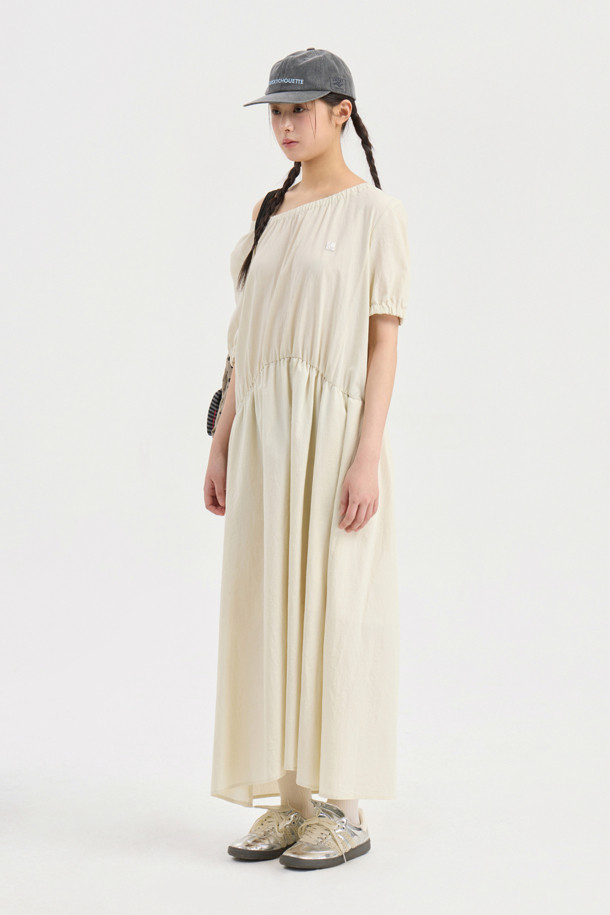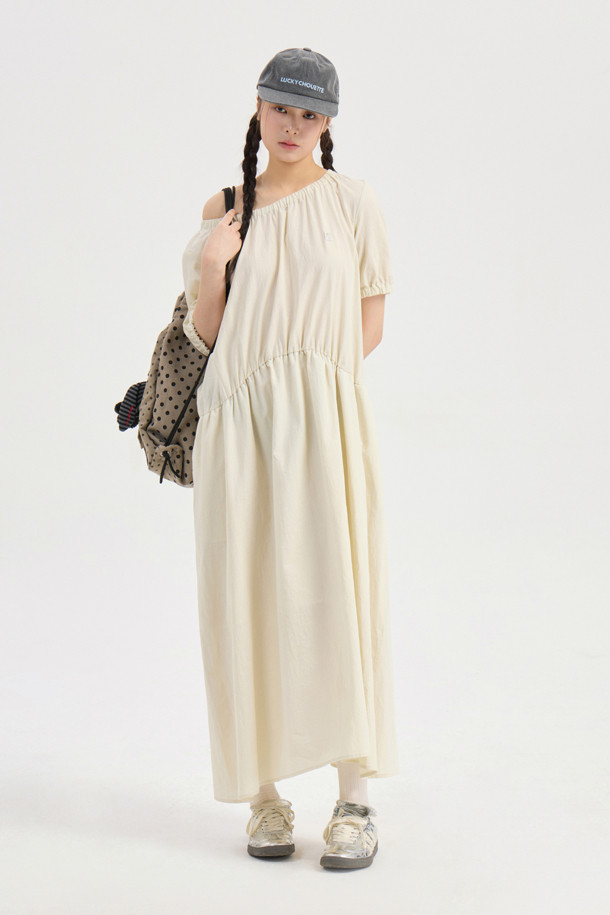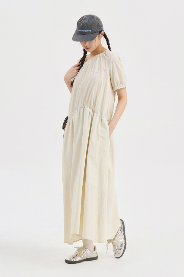 Chouetties by LUCKY CHOUETTE_Shirring Volume Short Sleeve Long Dress (light beige)