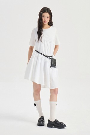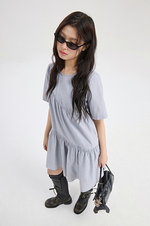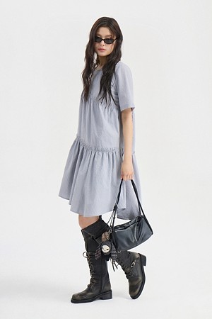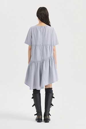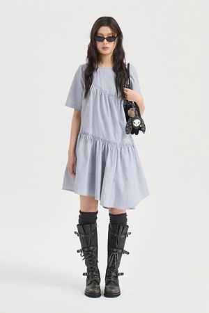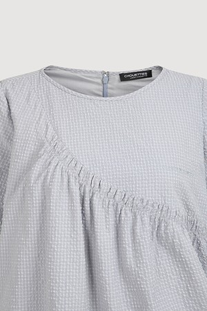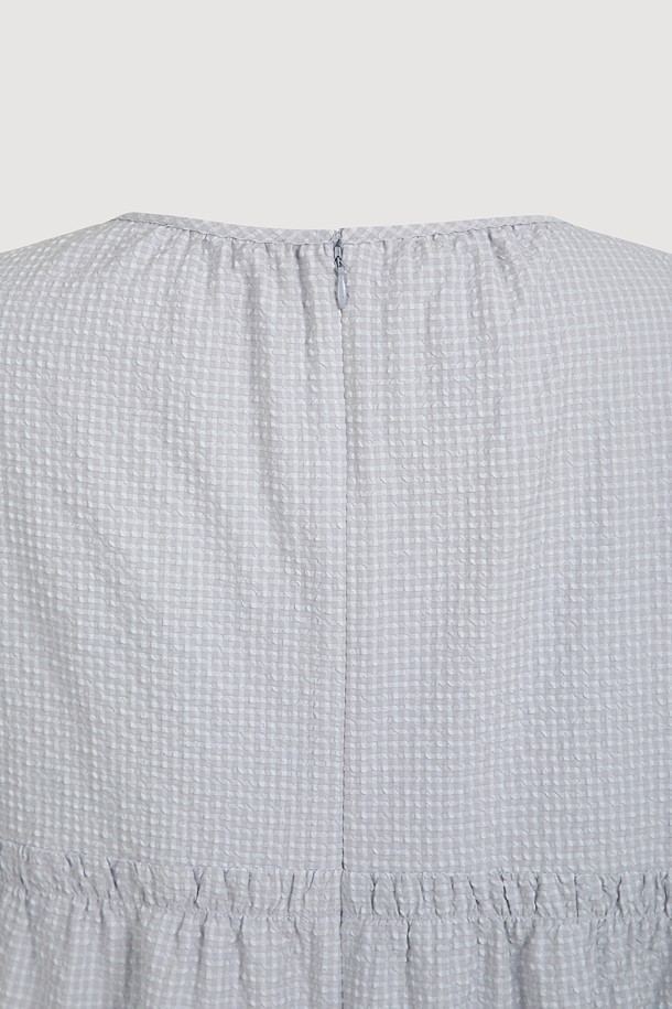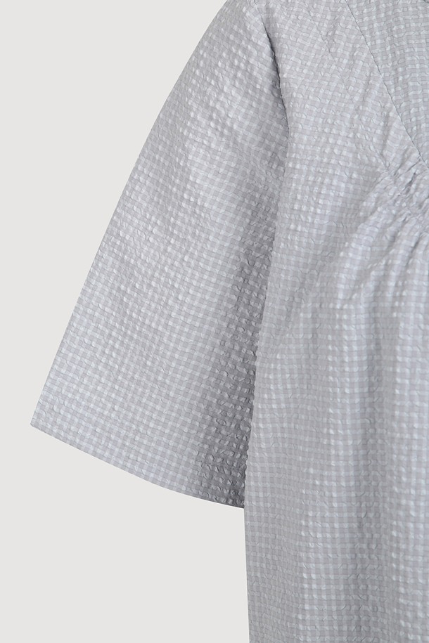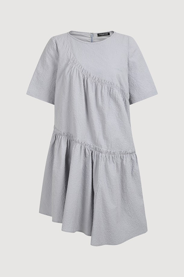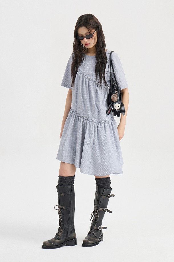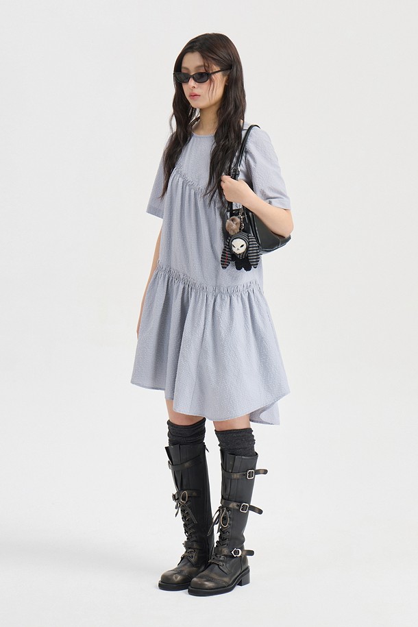 Chouetties by LUCKY CHOUETTE_Check Short Sleeve Volume Mini Dress (light gray)