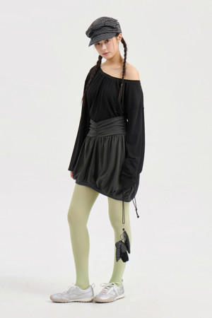 Chouetties by LUCKY CHOUETTE_Unbalance Shirring Mini Skirt (light begie)