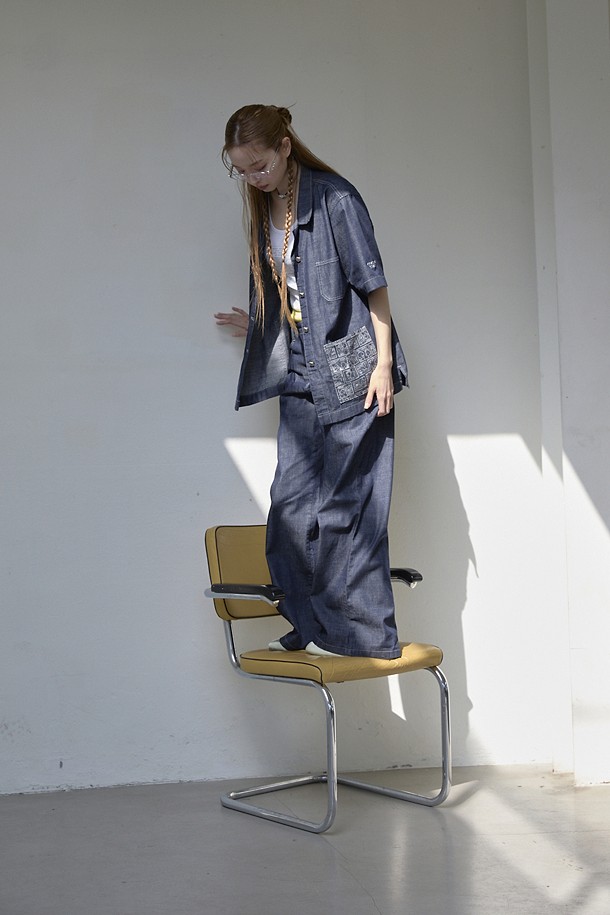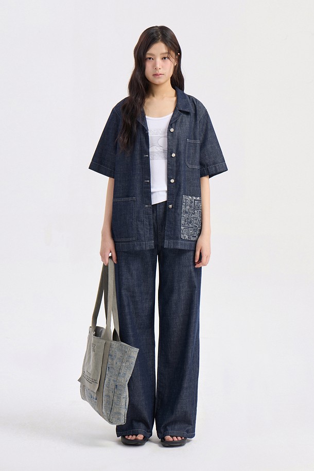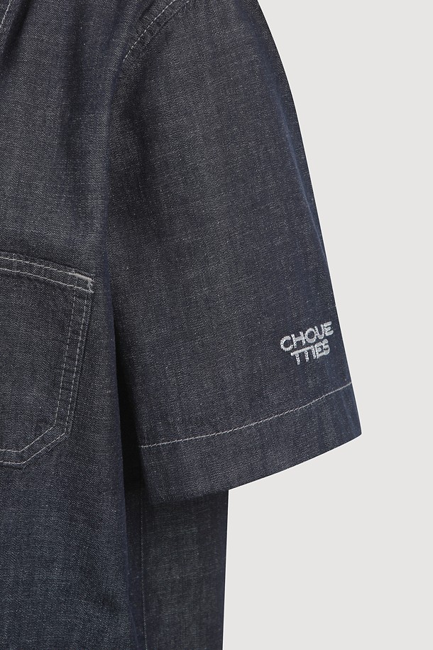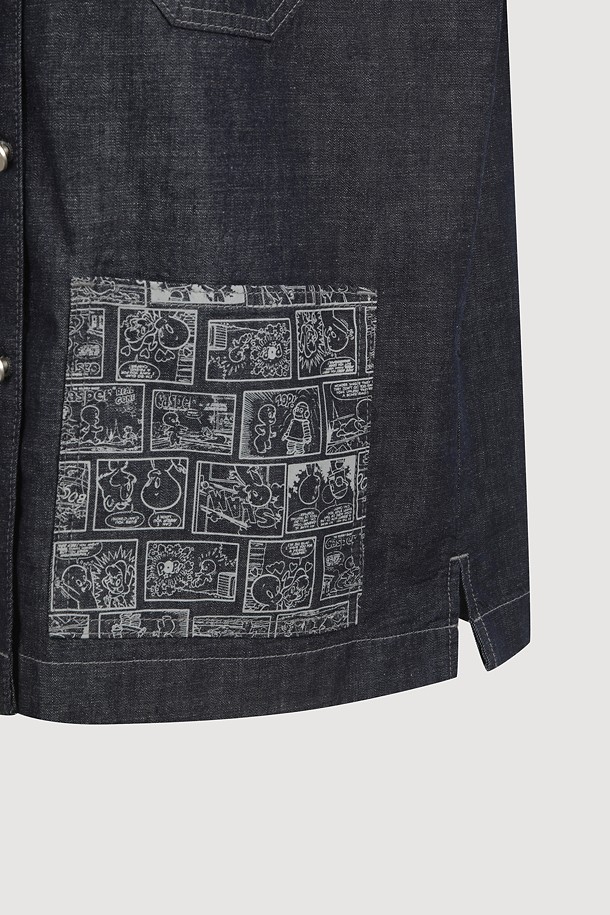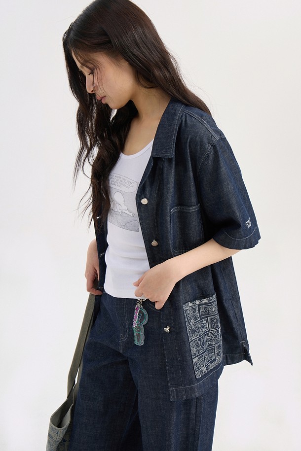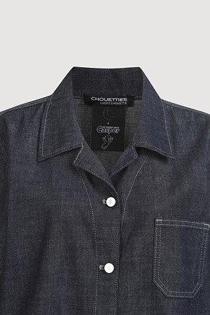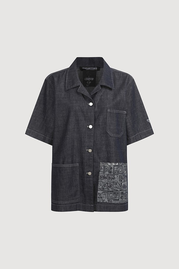 [CASPER X CHOUETTIES] Pocket Graphic Point Denim Blouse (dark blue)