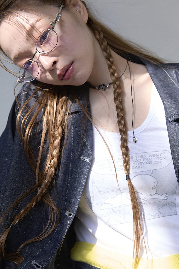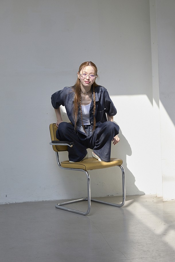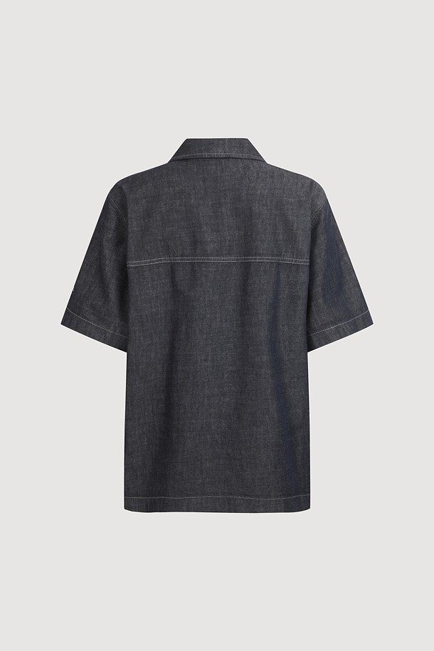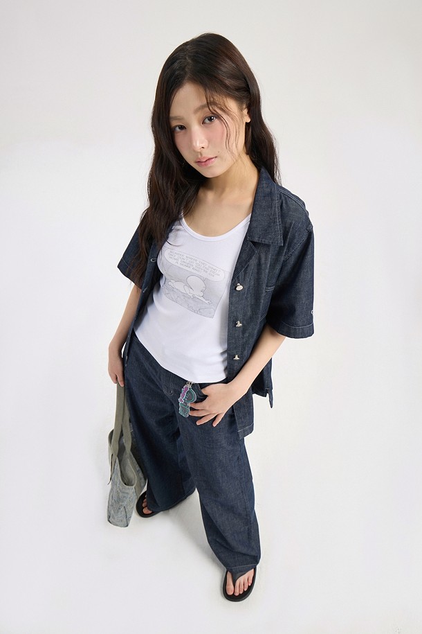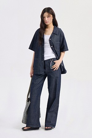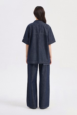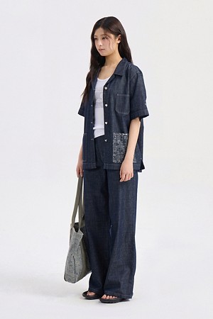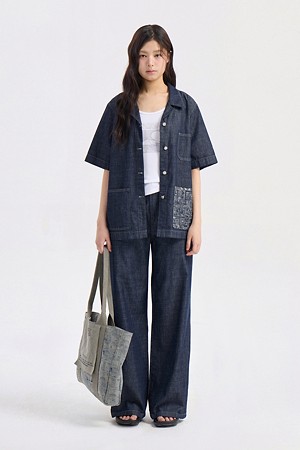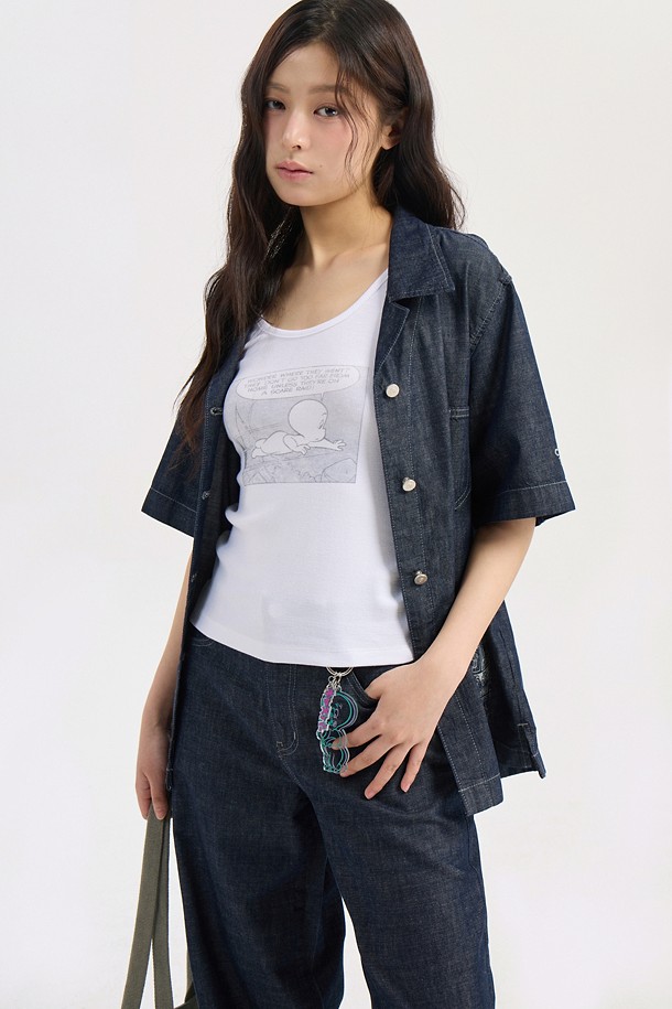 [CASPER X CHOUETTIES] Pocket Graphic Point Denim Blouse (dark blue)