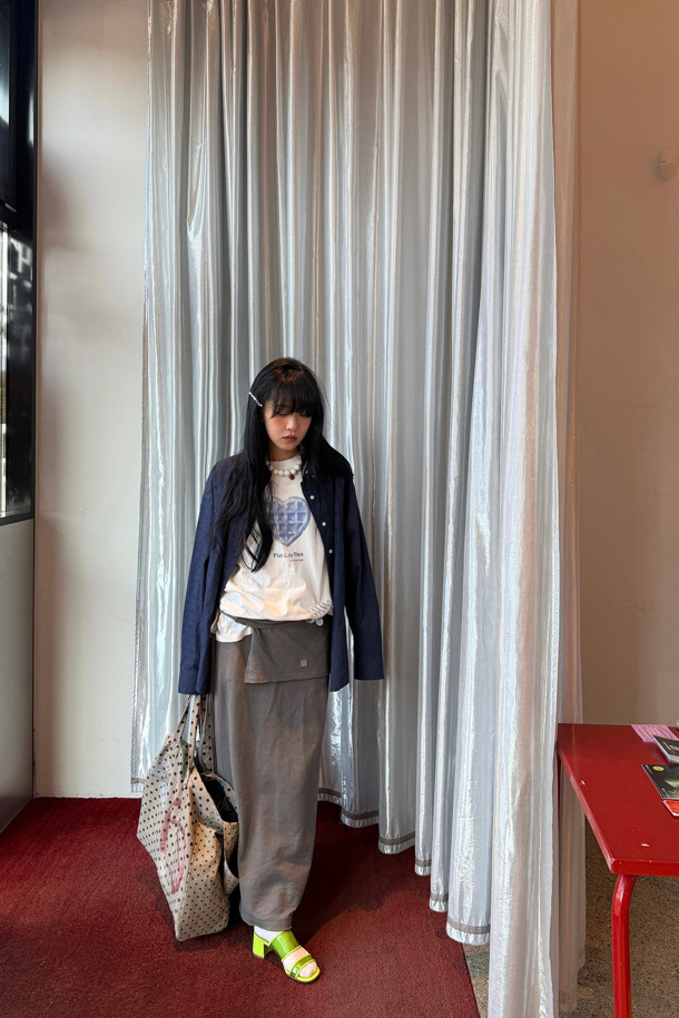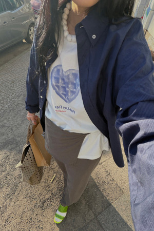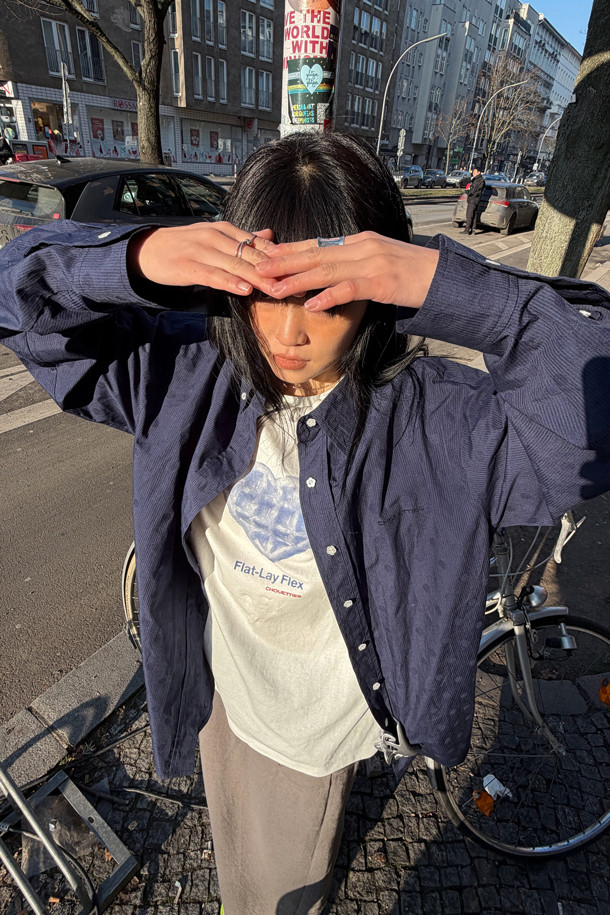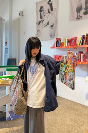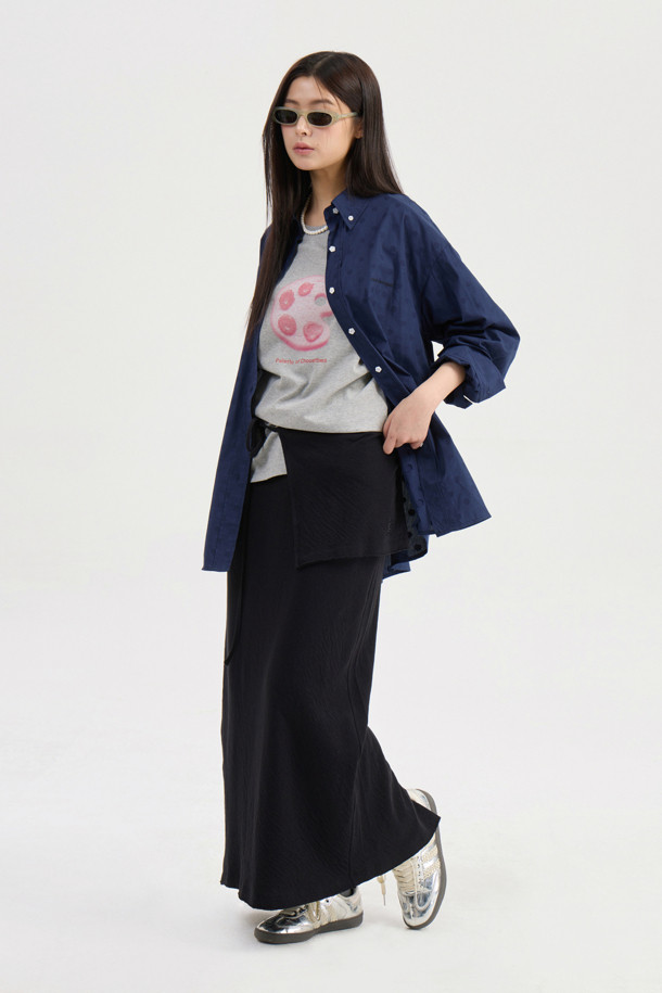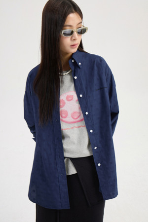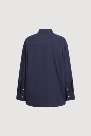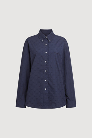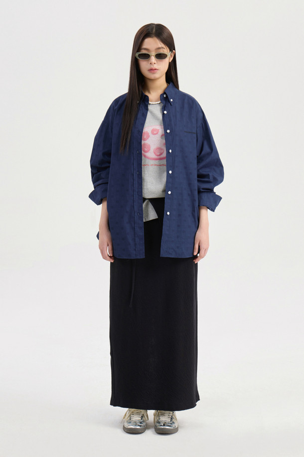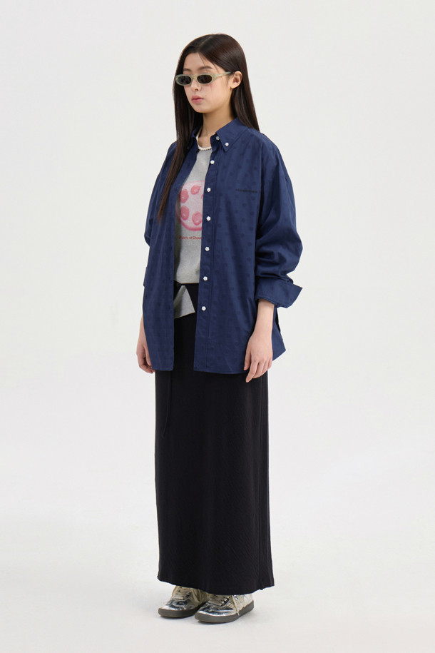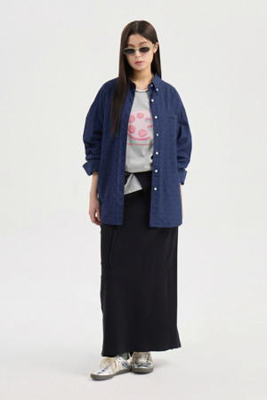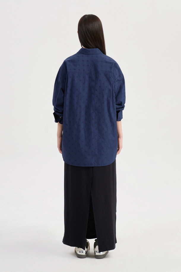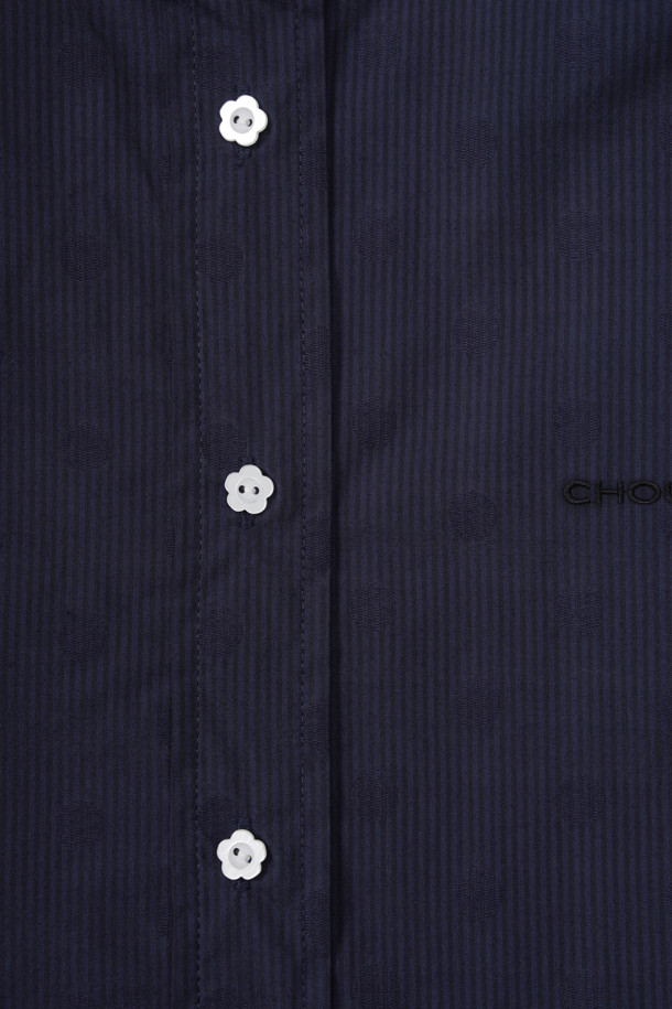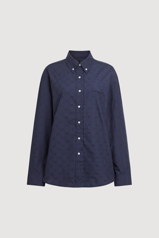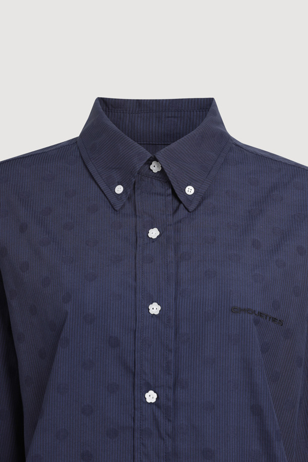 Chouetties by LUCKY CHOUETTE_ Dot Stripe Over-fit Shirts Blouse (navy)