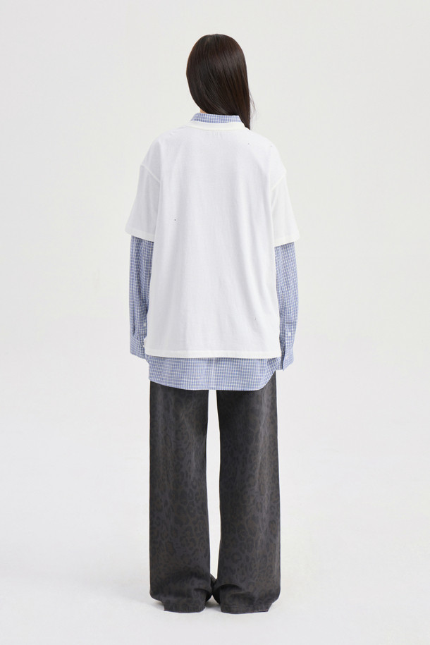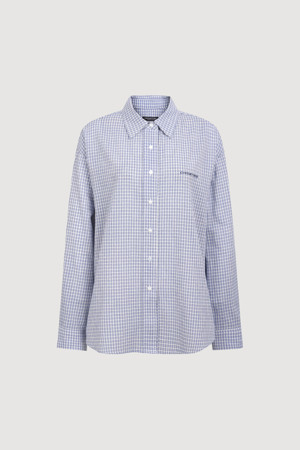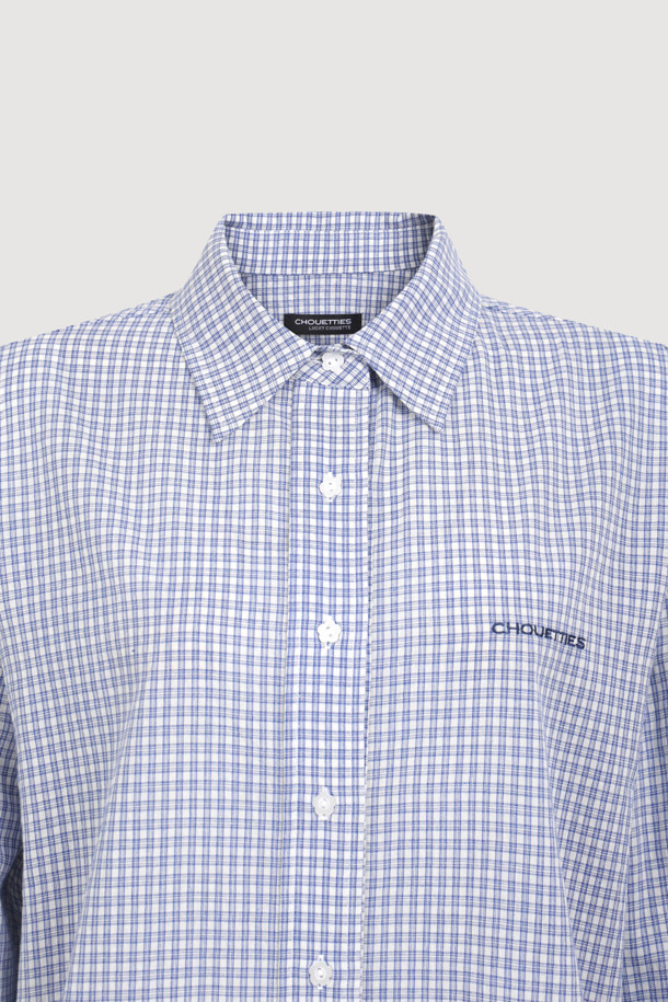 Chouetties by LUCKY CHOUETTE_ Check Over-fit Shirts Blouse (blue)
