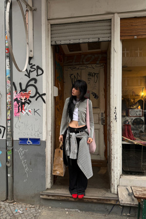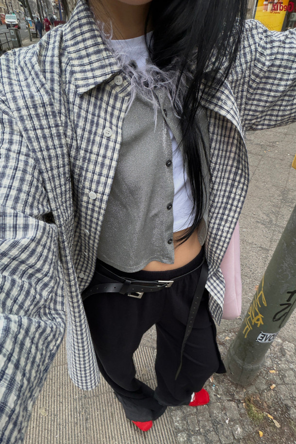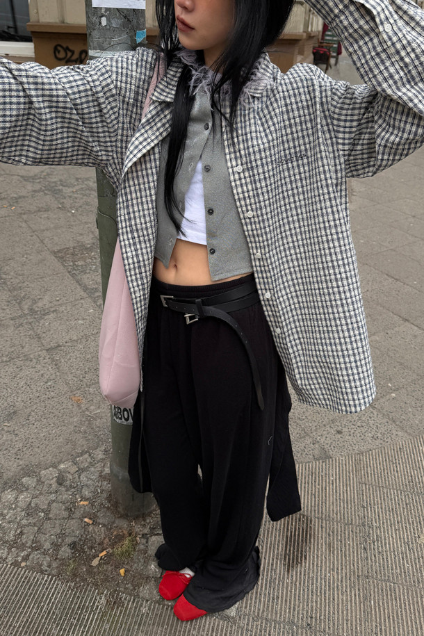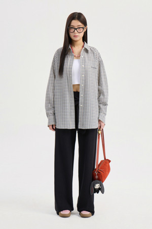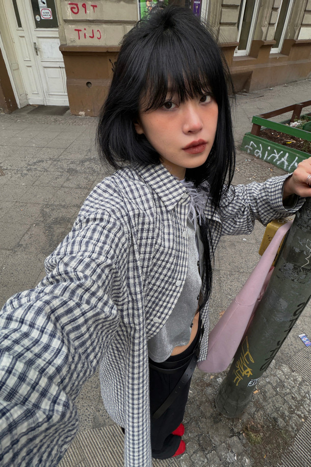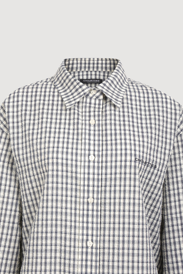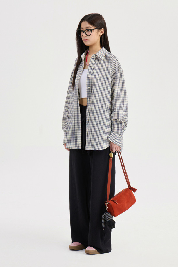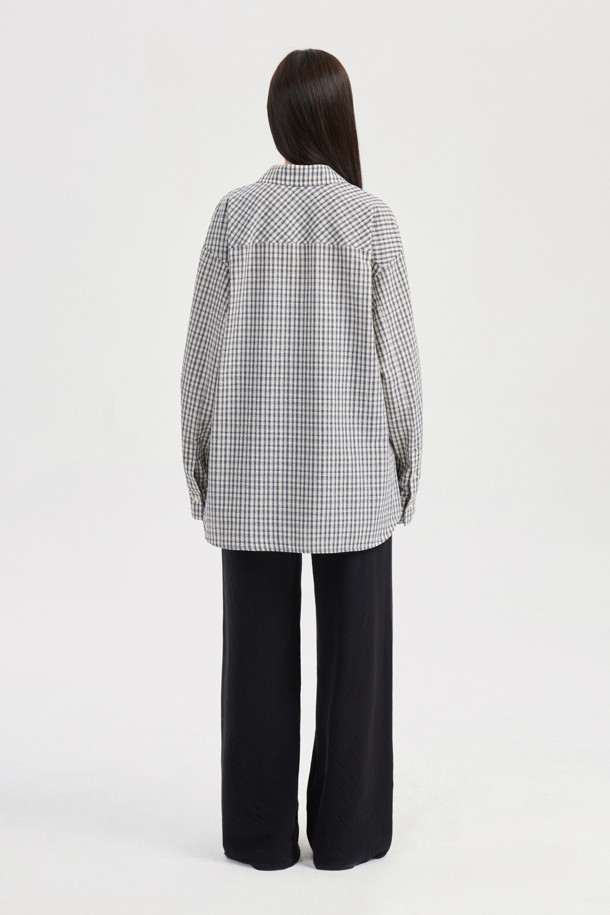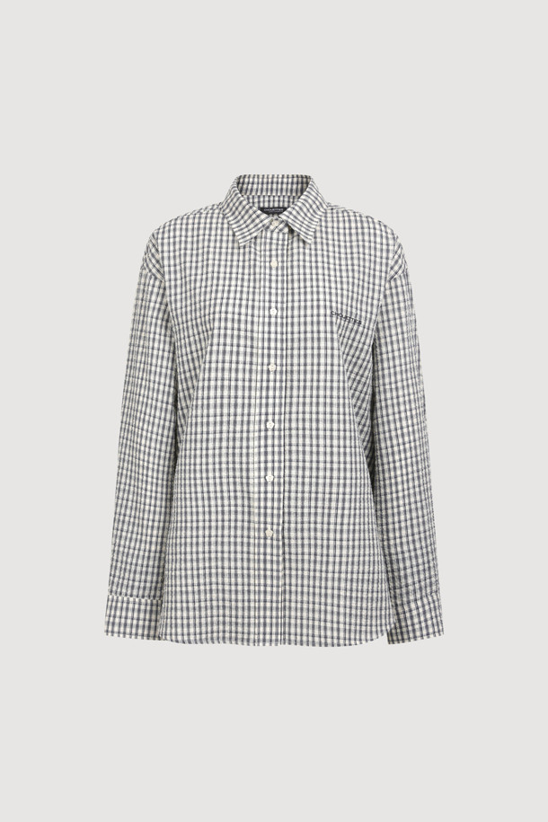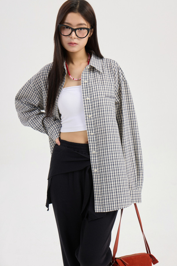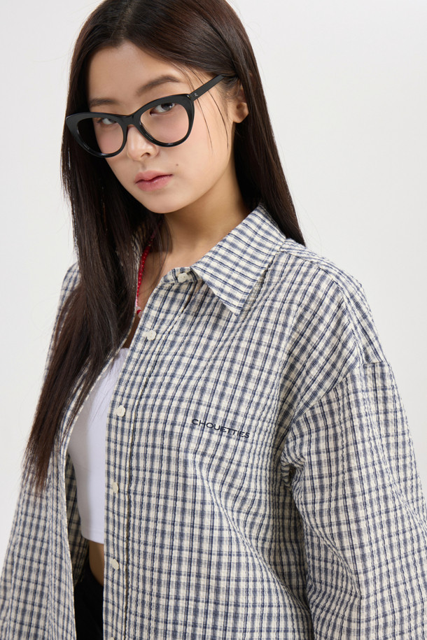 Chouetties by LUCKY CHOUETTE_ Check Over-fit Shirts Blouse (navy)