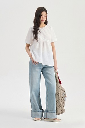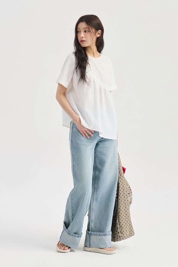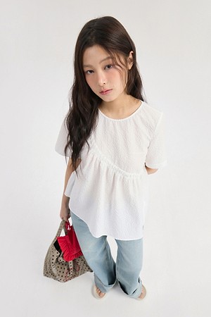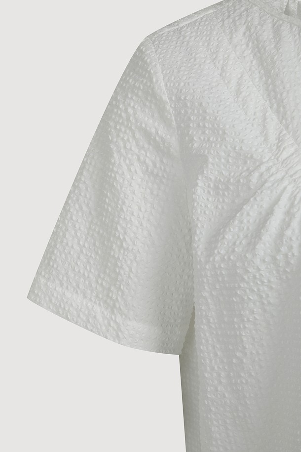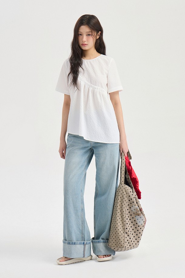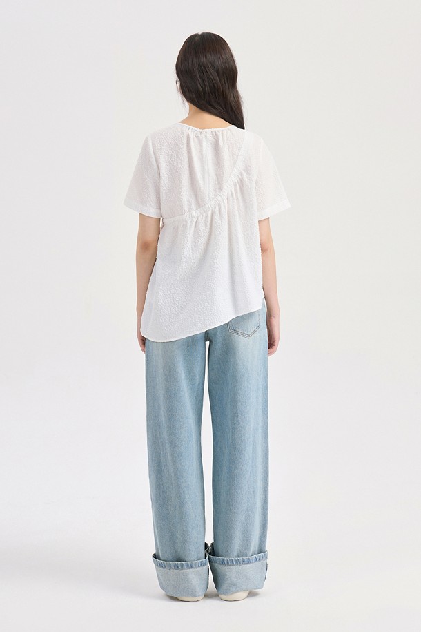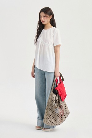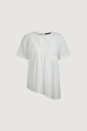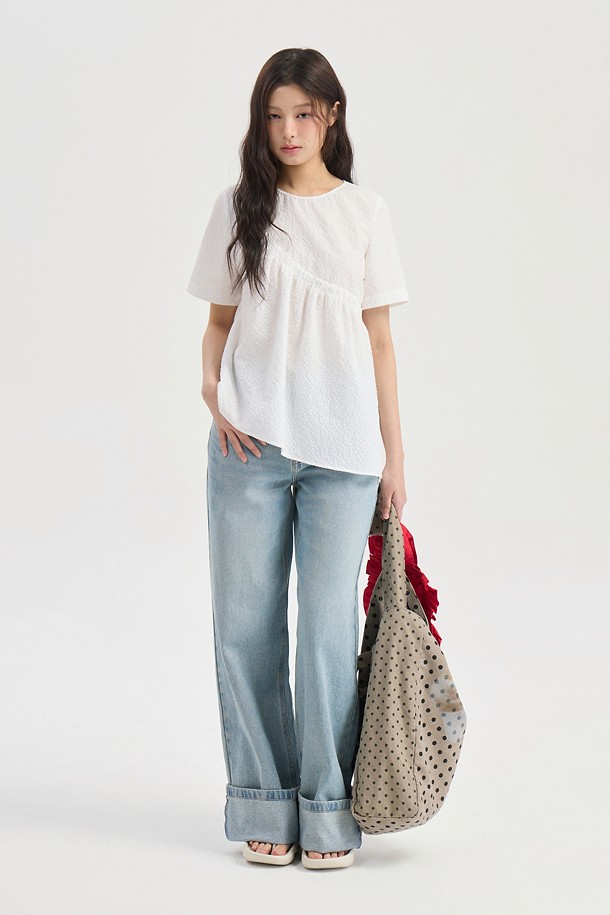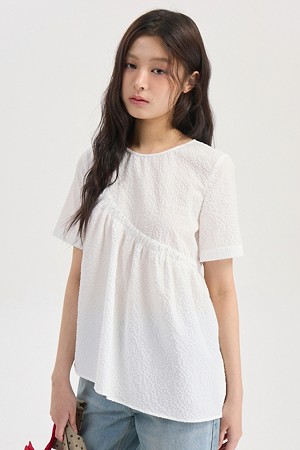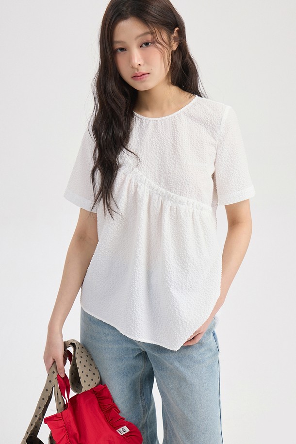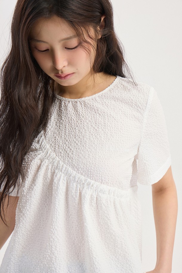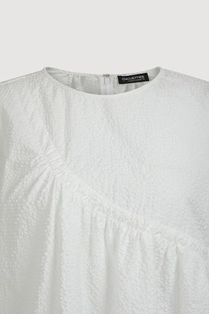 Chouetties by LUCKY CHOUETTE_Unbalance Volume Check Blouse (white)