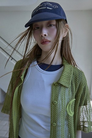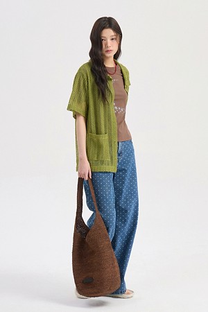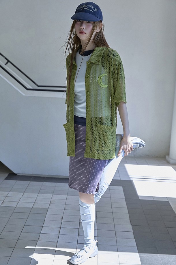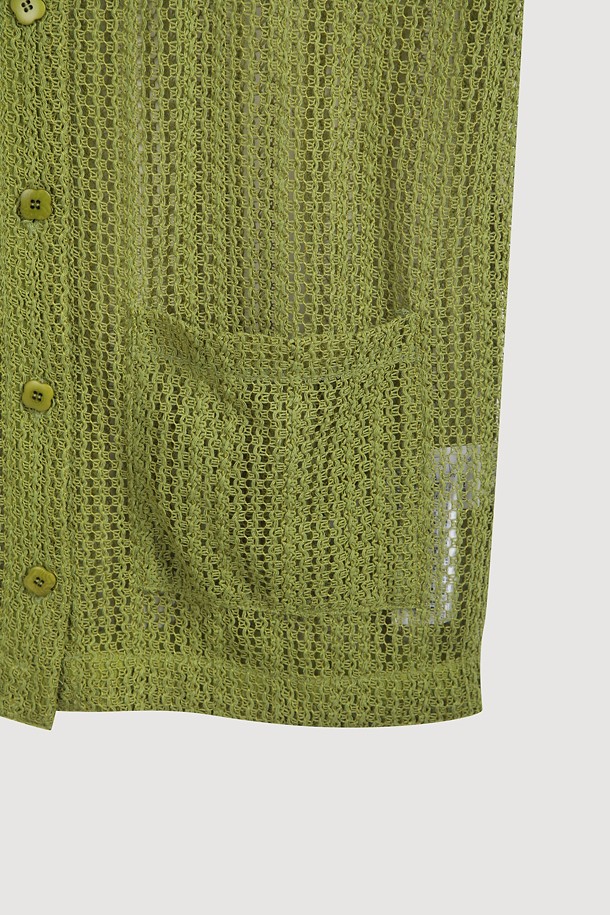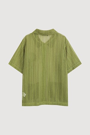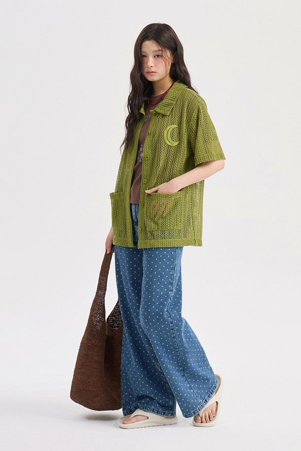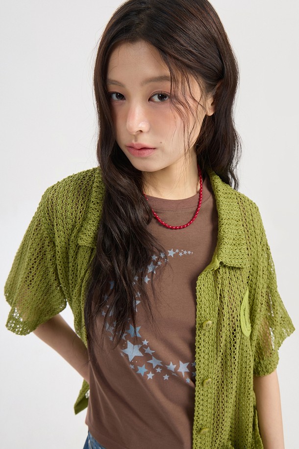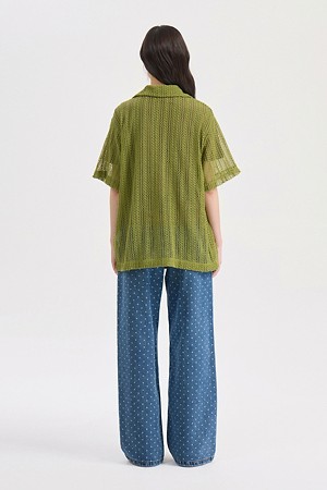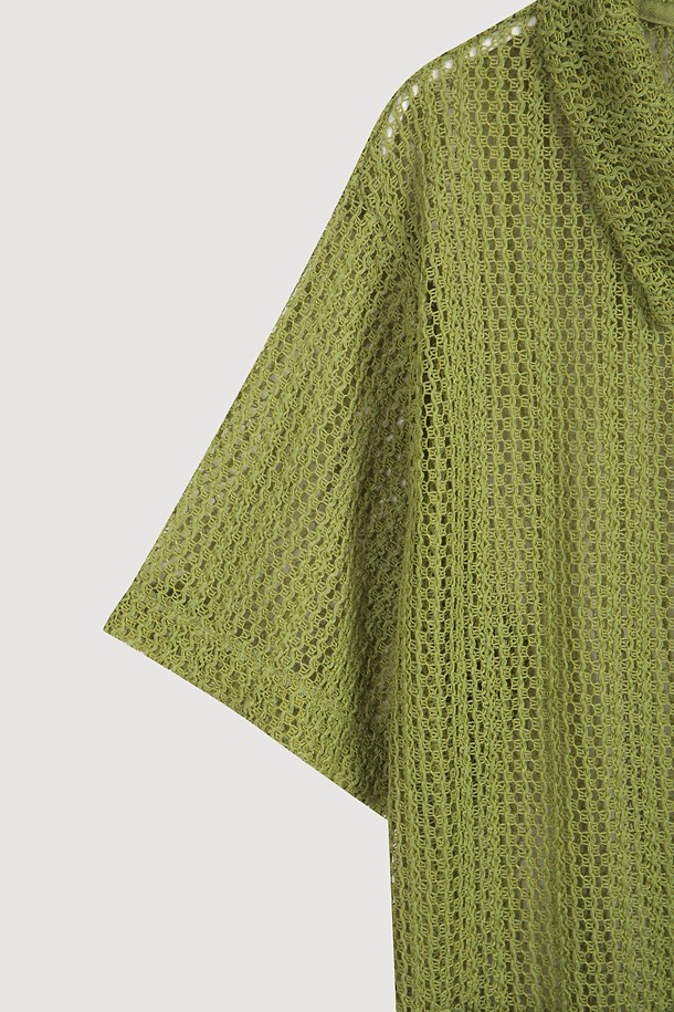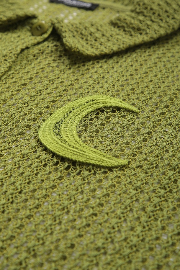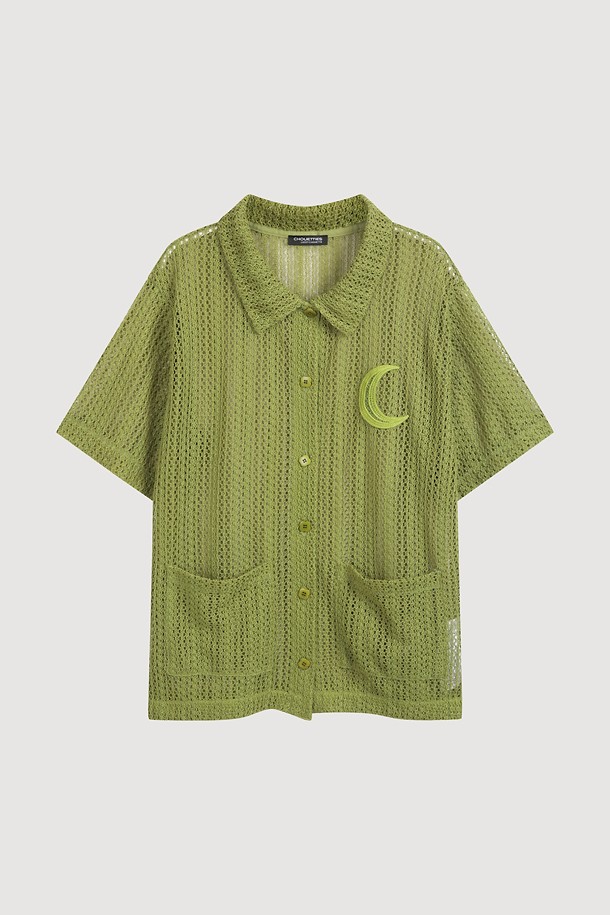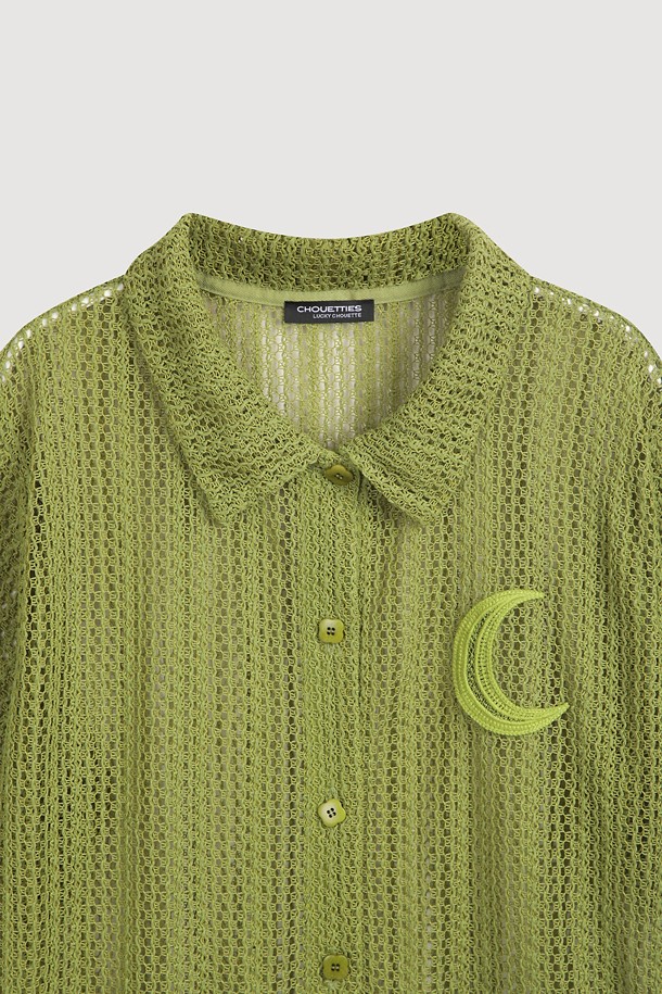 Chouetties by LUCKY CHOUETTE_Moon Point Crochet Short Sleeve Shirt Blouse (olive)