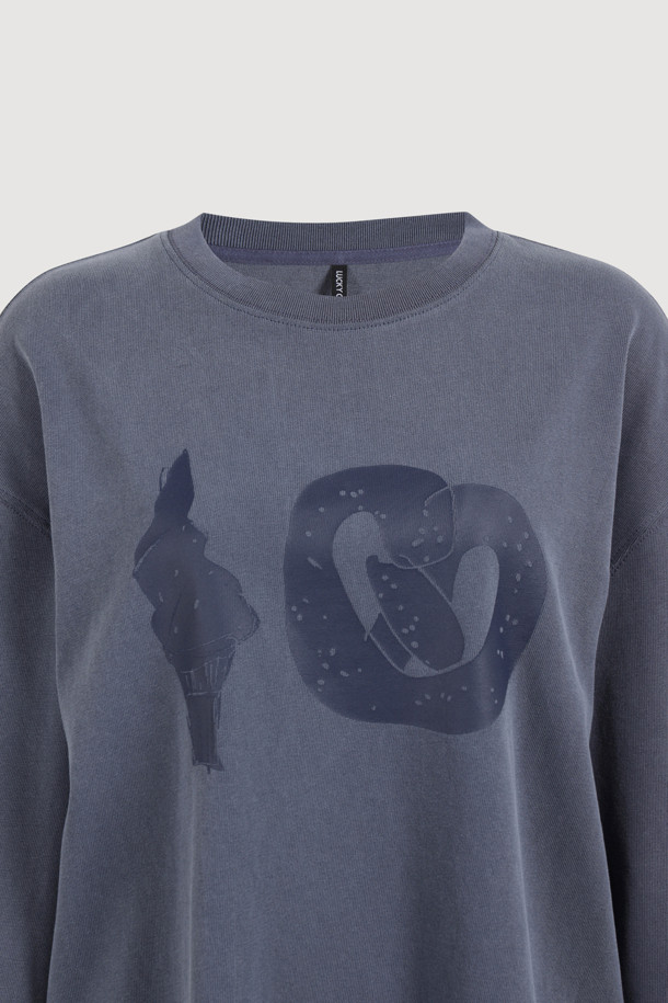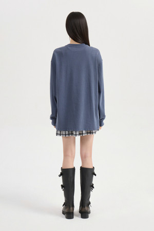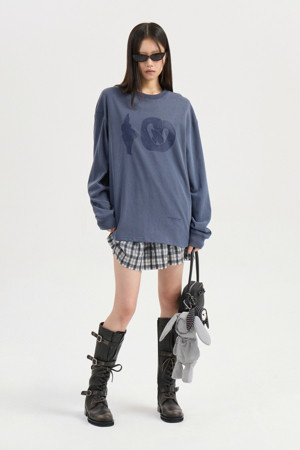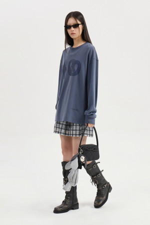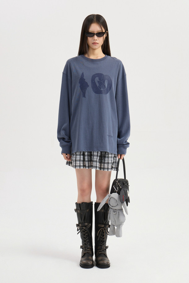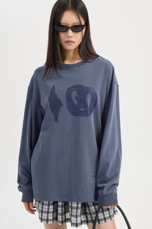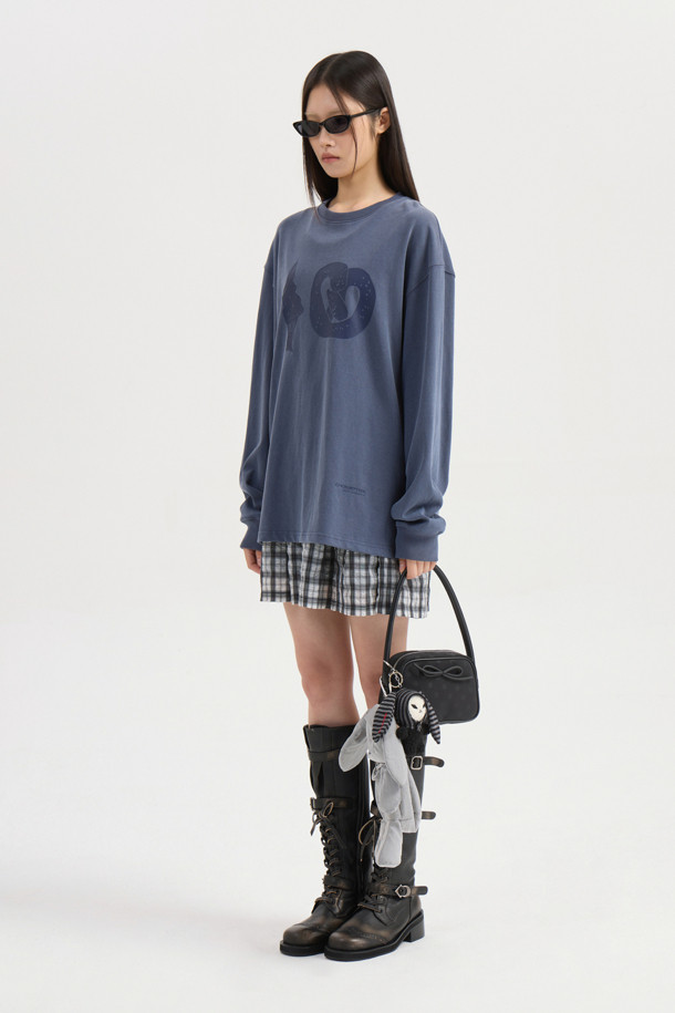 Chouetties by LUCKY CHOUETTE_Graphic Loose Fit Pigment Long Sleeve T-shirt (dark blue)