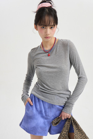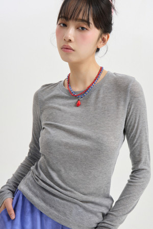 Chouetties by LUCKY CHOUETTE_Sheer Slim Fit Long Sleeve T-shirts (melange grey)