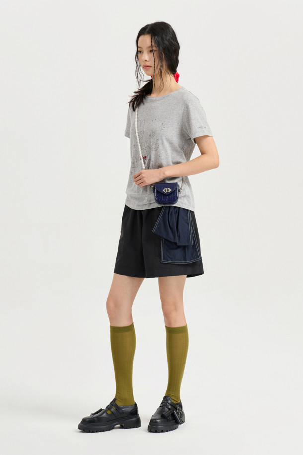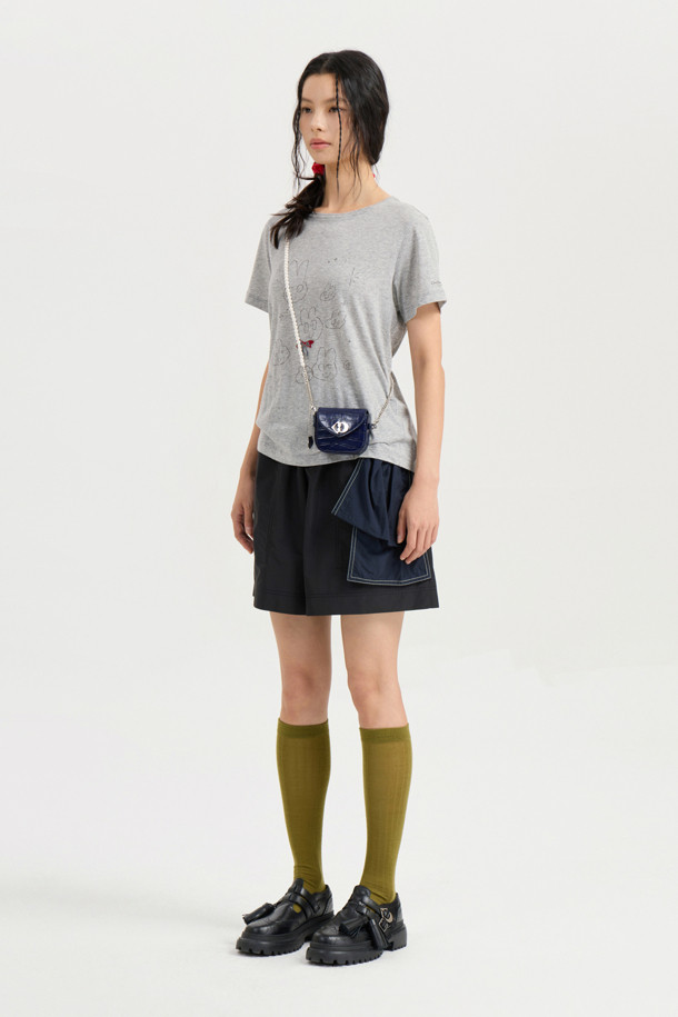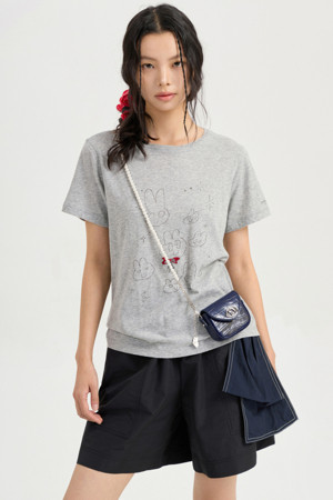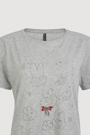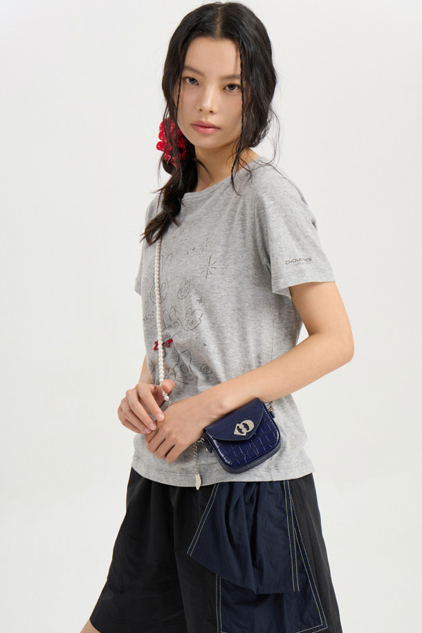 Chouetties by LUCKY CHOUETTE_Graphic Slim Fit Half Sleeve T-shirt (melange grey)