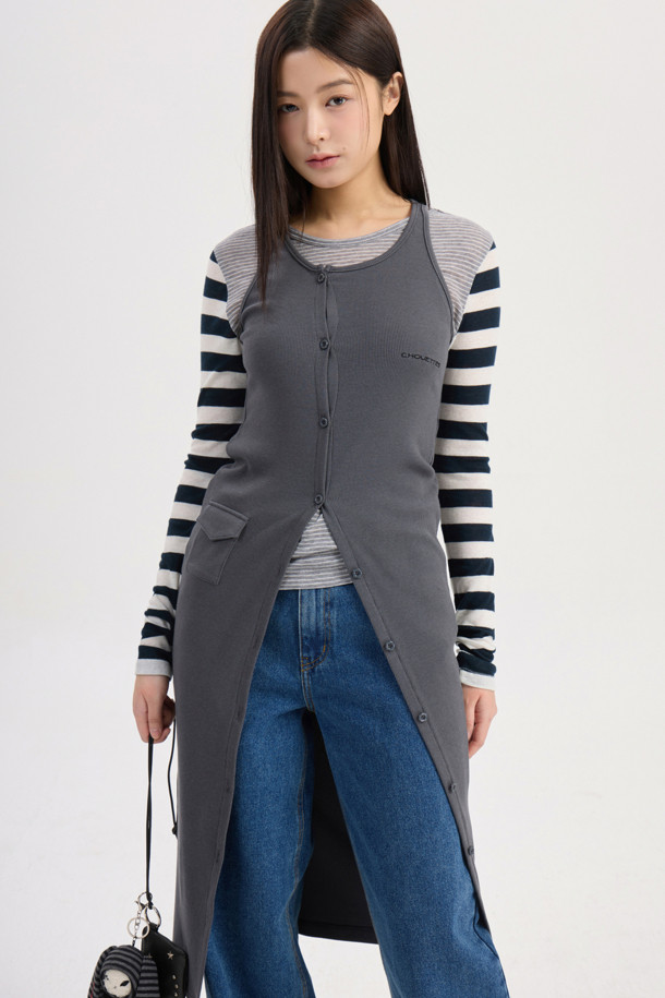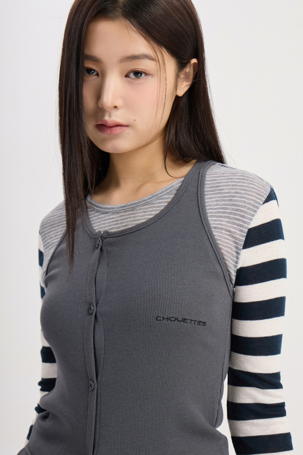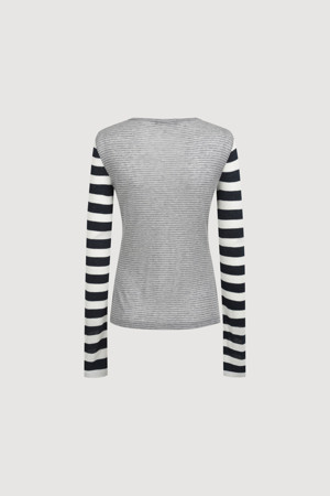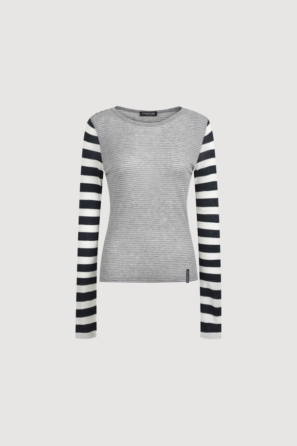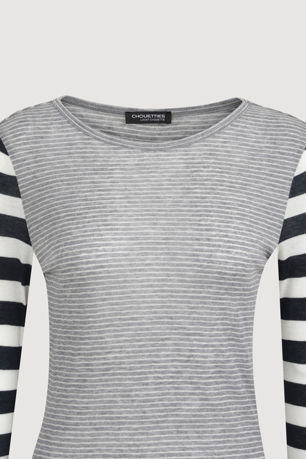 Chouetties by LUCKY CHOUETTE_Stripe Mix Long Sleeve T-Shirt (melange grey)