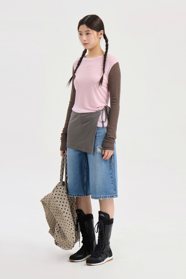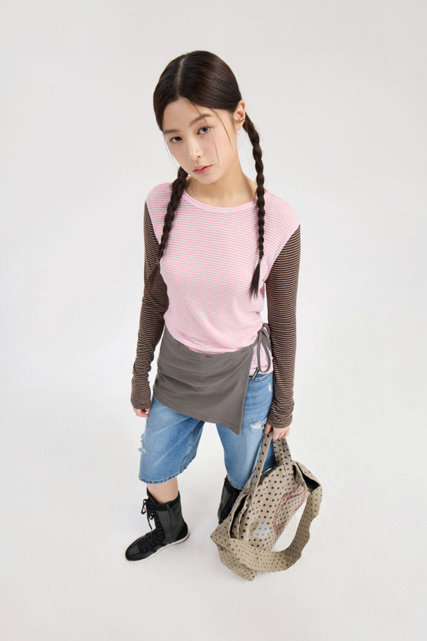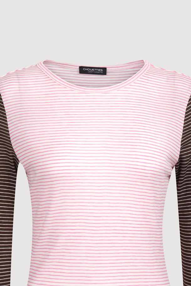 Chouetties by LUCKY CHOUETTE_Stripe Mix Long Sleeve T-Shirt (pink)