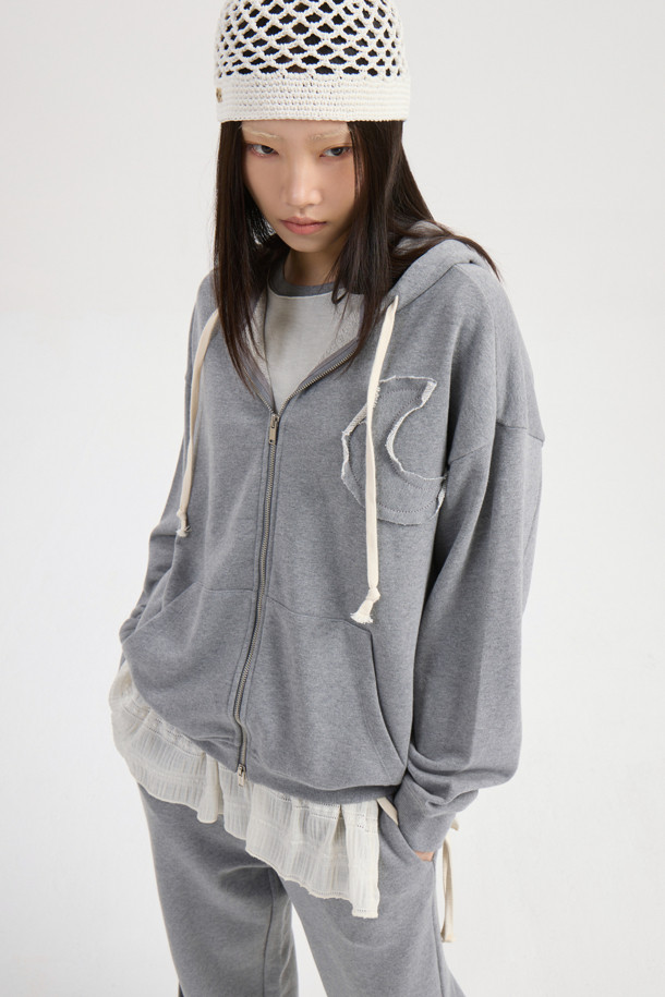 Chouetties by LUCKY CHOUETTE_Moon Point Hood Jumper (melange grey)