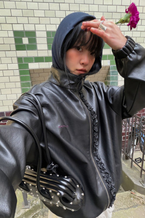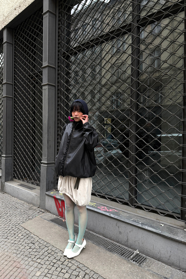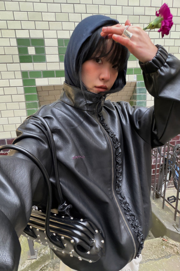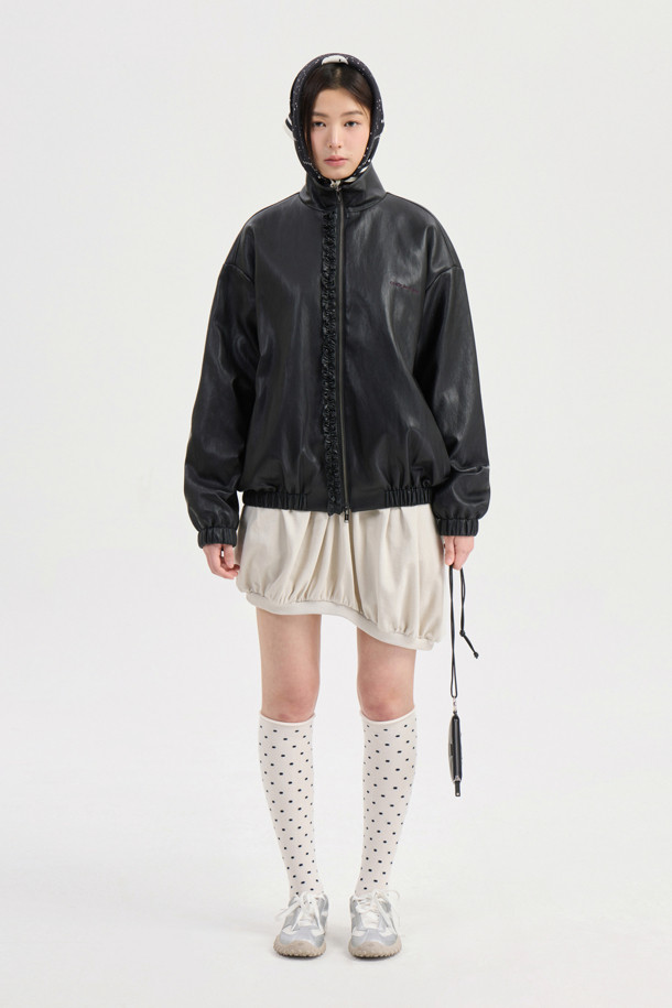Chouetties by LUCKY CHOUETTE_ Frill Fake Leather Jumper (black)