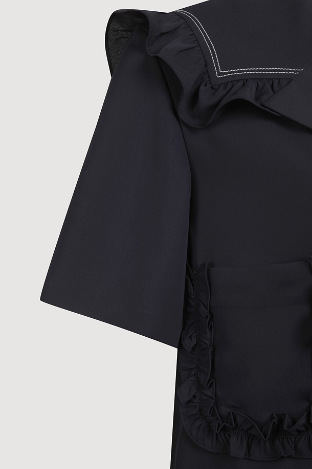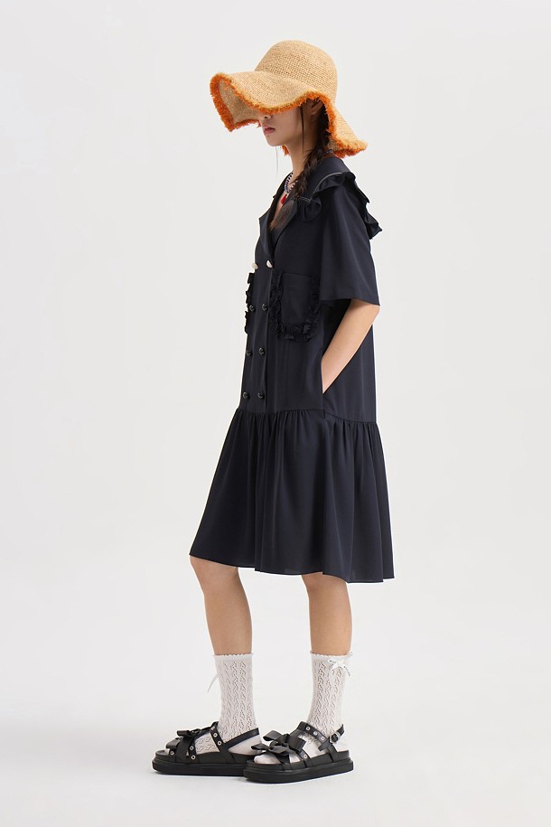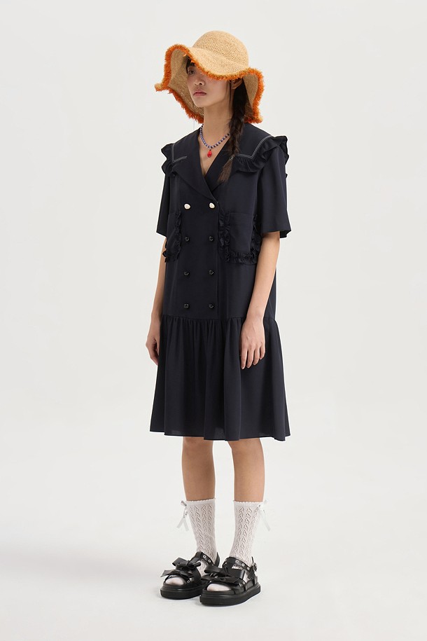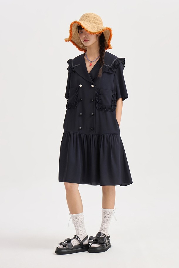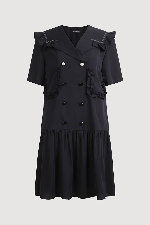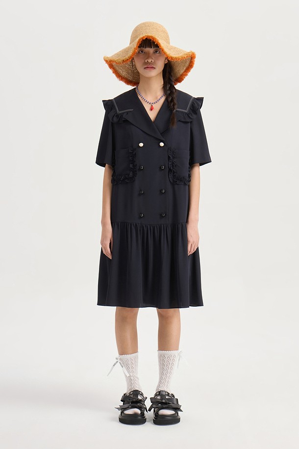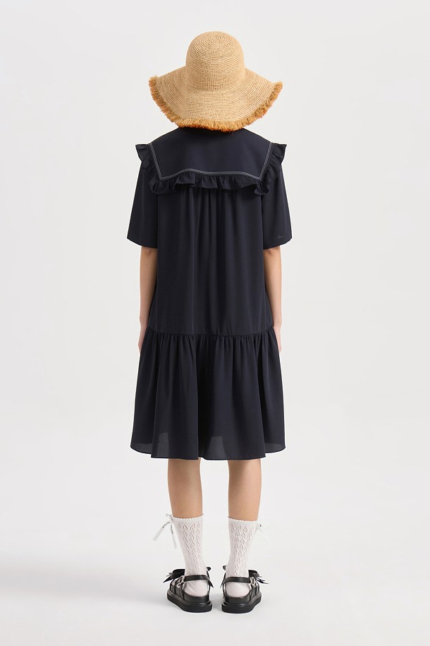 Sailor Collar Poly Dress (dark navy)