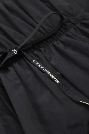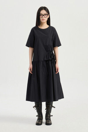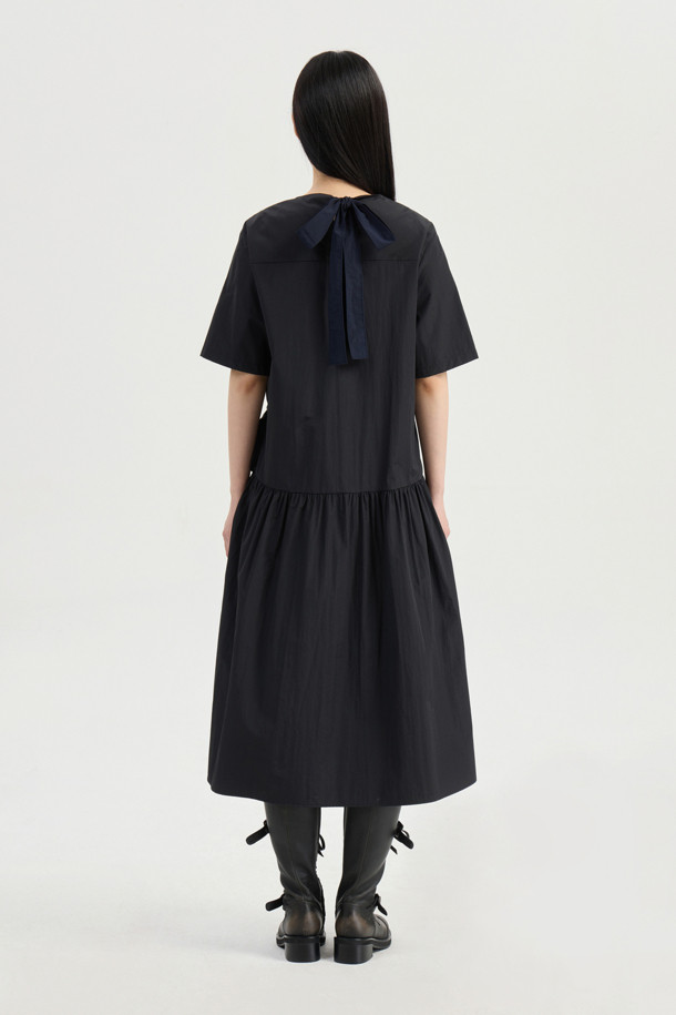 Ribbon Point Short-Sleeved Long Dress (black)