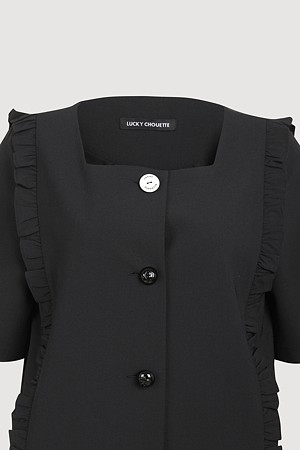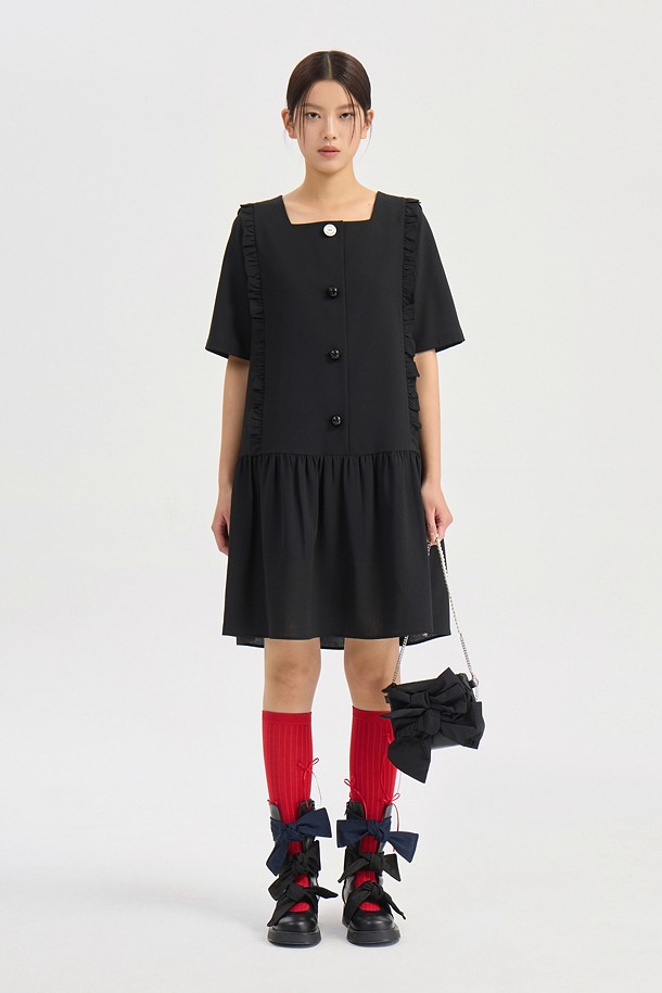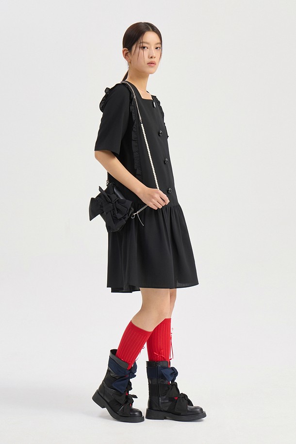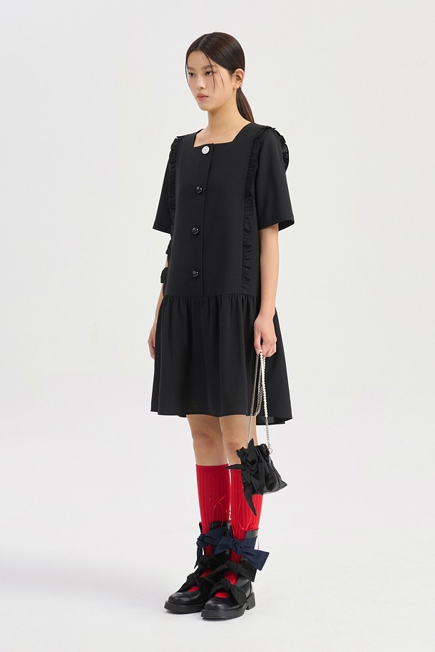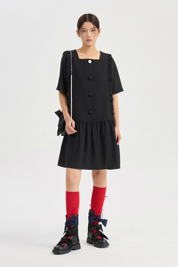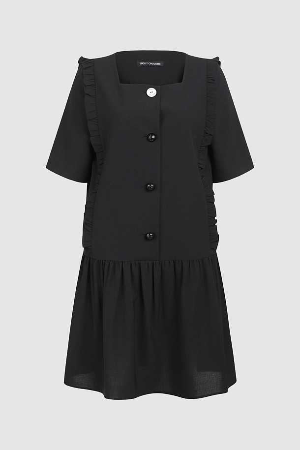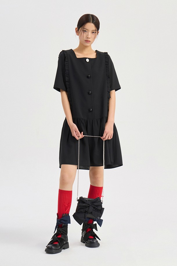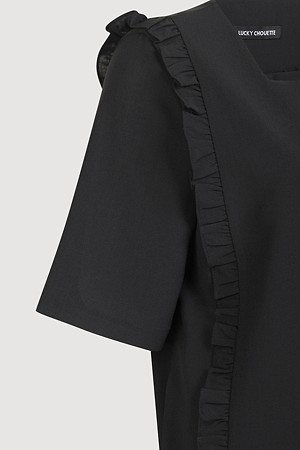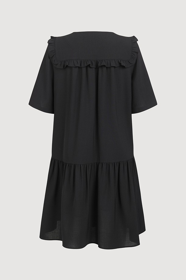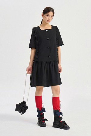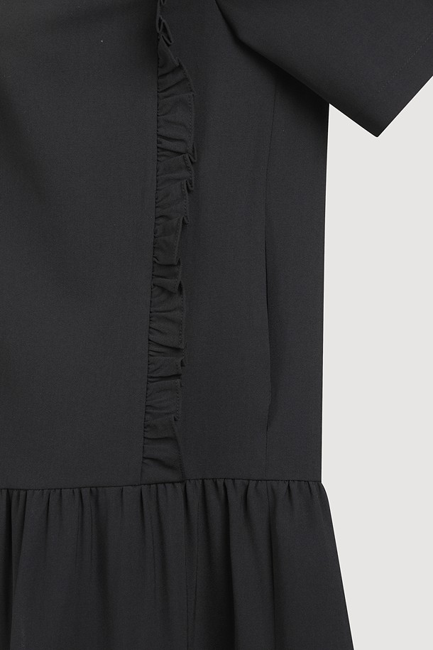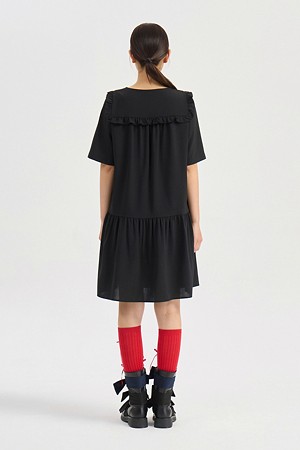 Frill Point Short Sleeve Poly Mini Dress (black)