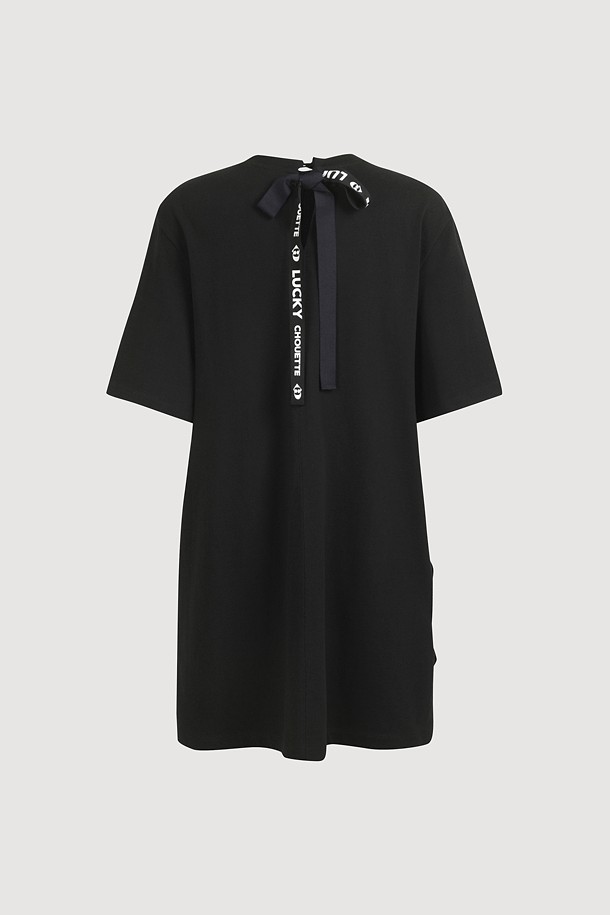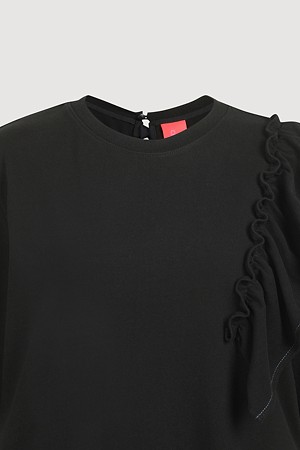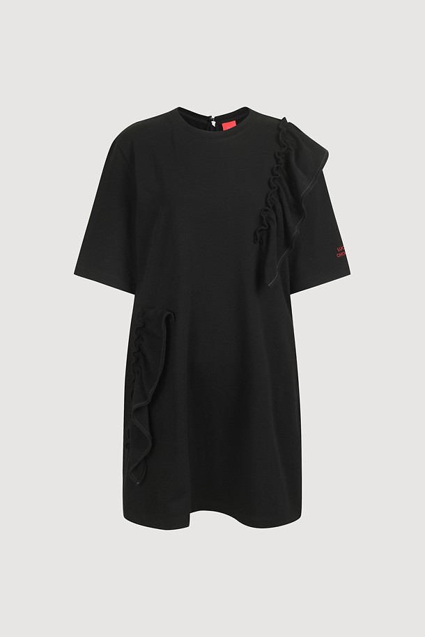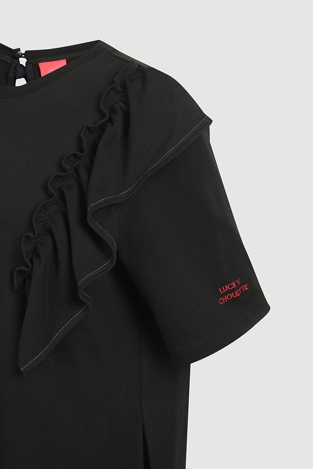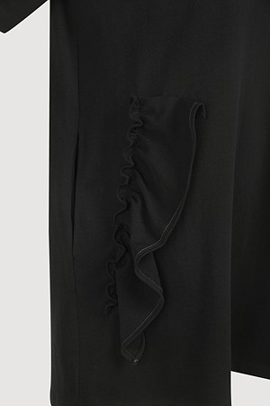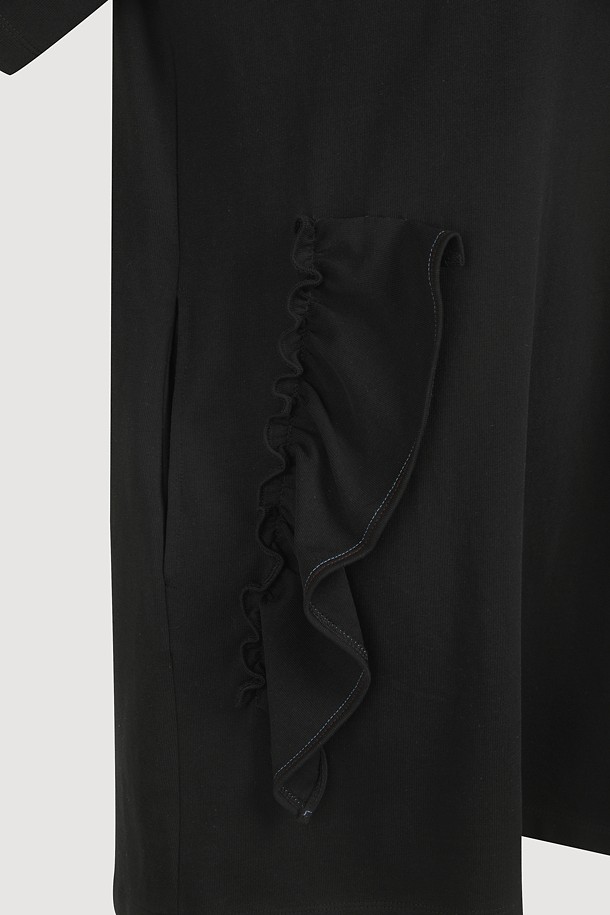 Ruffle Point Short Sleeve Jersey Mini Dress (black)