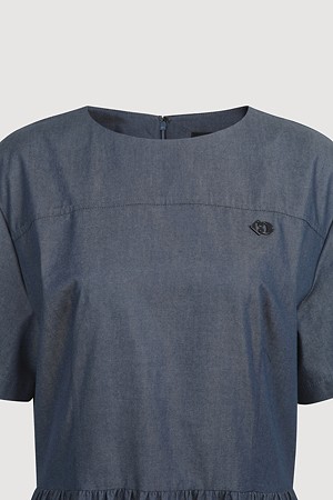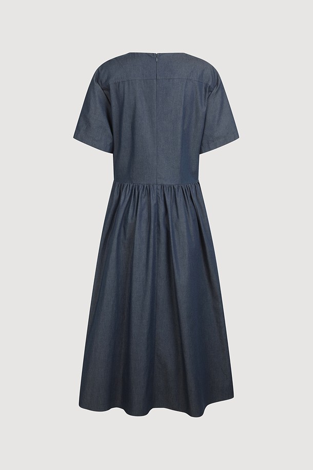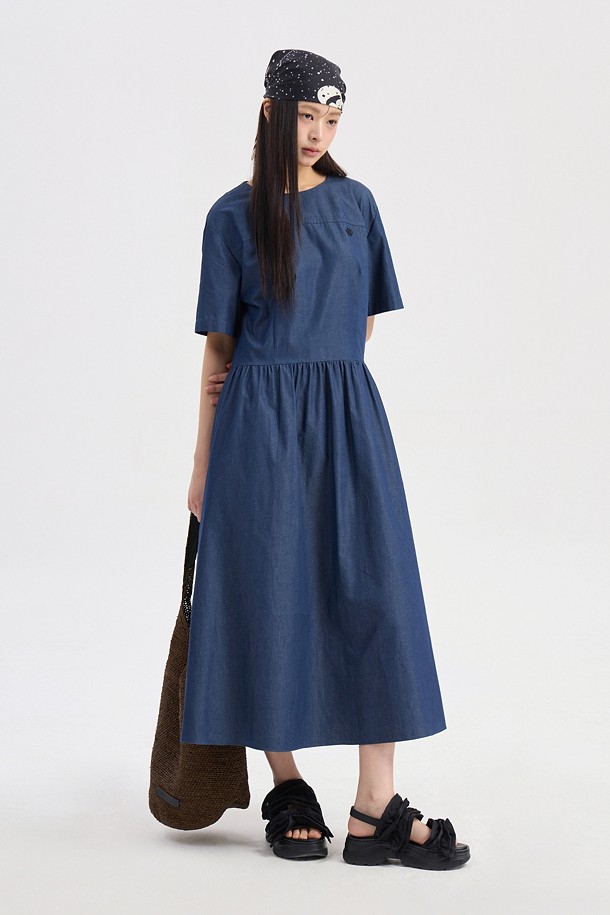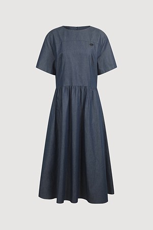 Fit & Flare Color Block Short Sleeve Dress (dark blue)