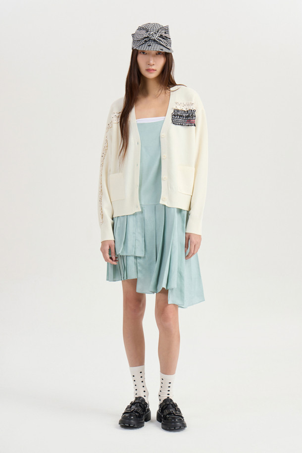 [Atelier] Hem Unbalanced Dot Slip Dress (mint)