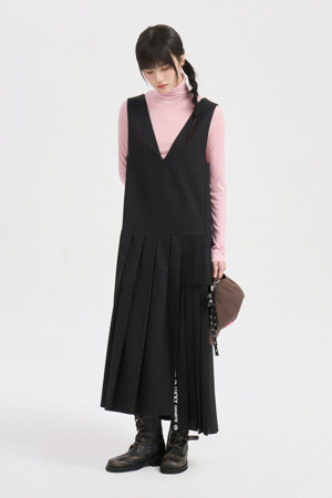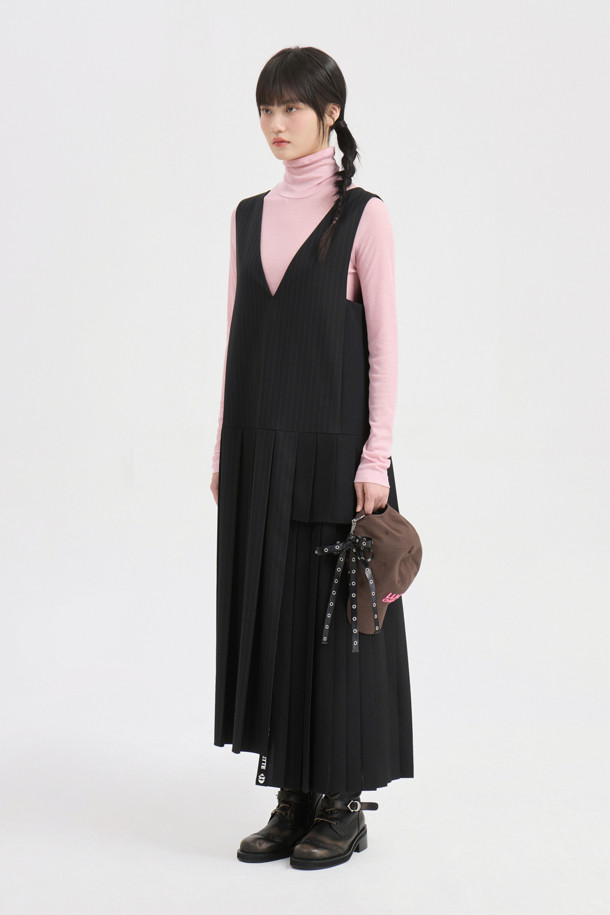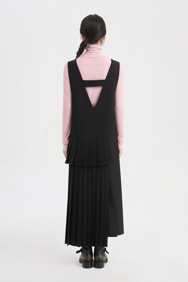 Mix Pleated Layered Dress (black)