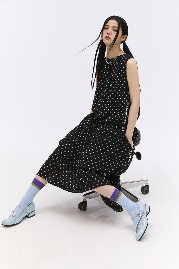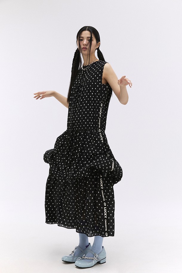 [FELIX X LUCKY CHOUETTE] Felix Print Sleeveless Dress (black)