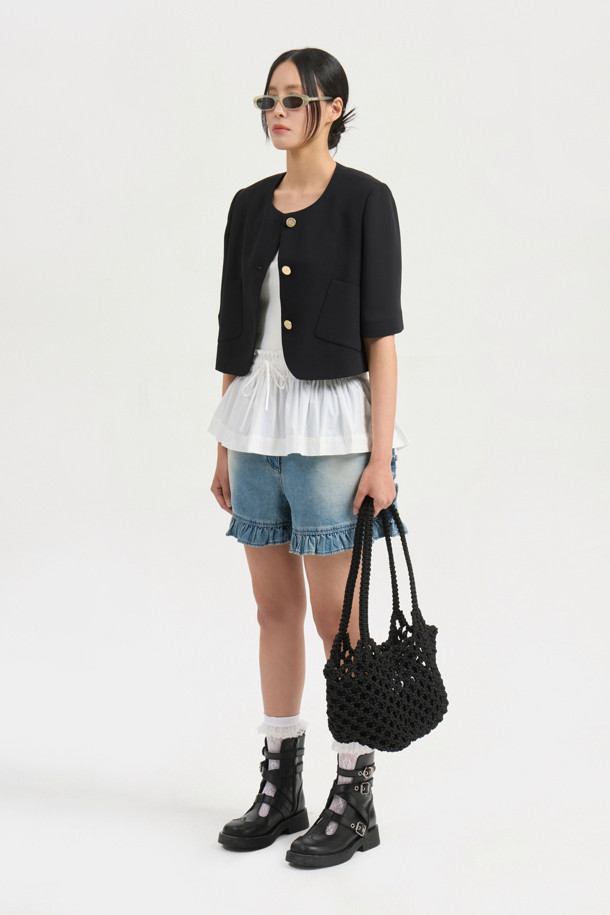 Poly Crop Half Sleeve Jacket (black)