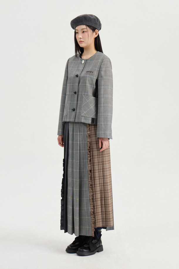 Gingham Check Round Neck Jacket (multi color)