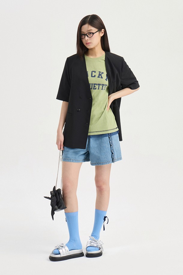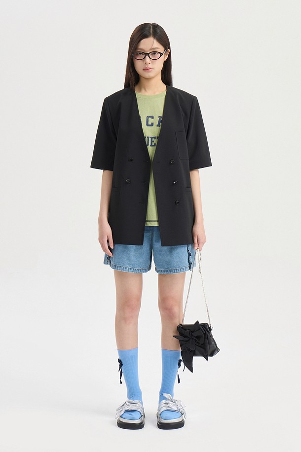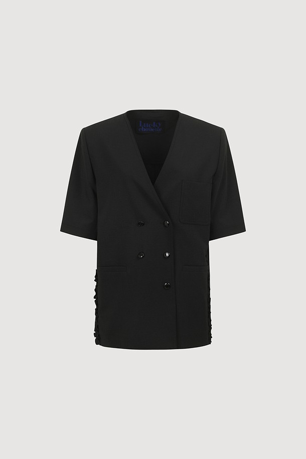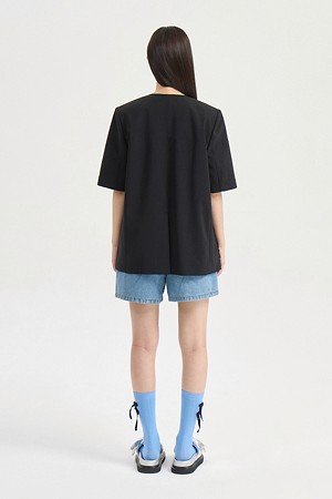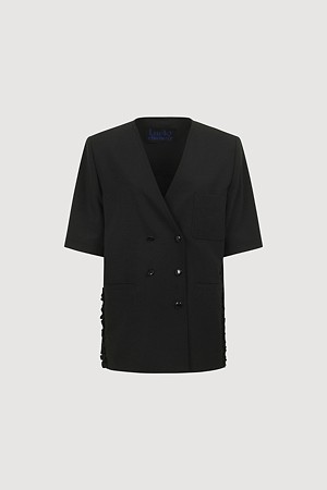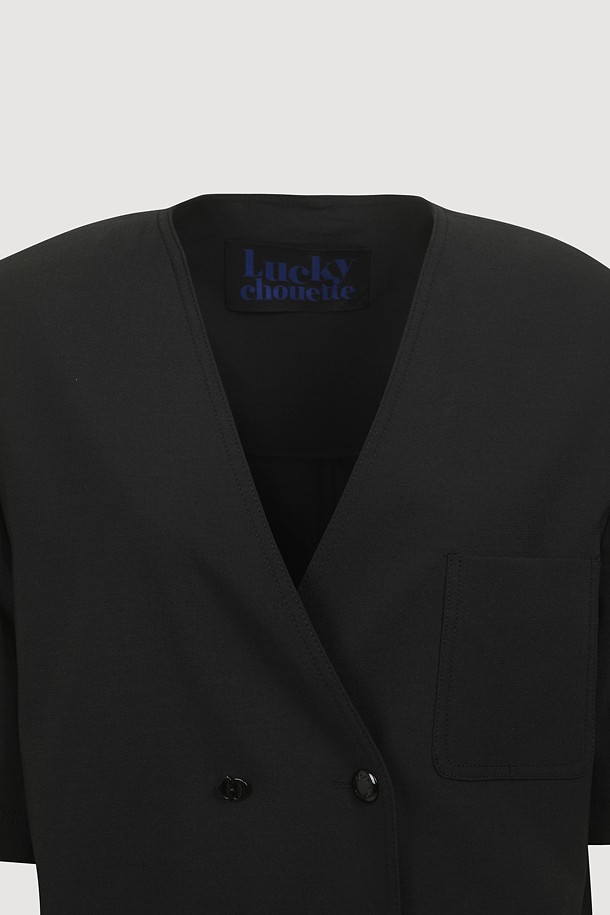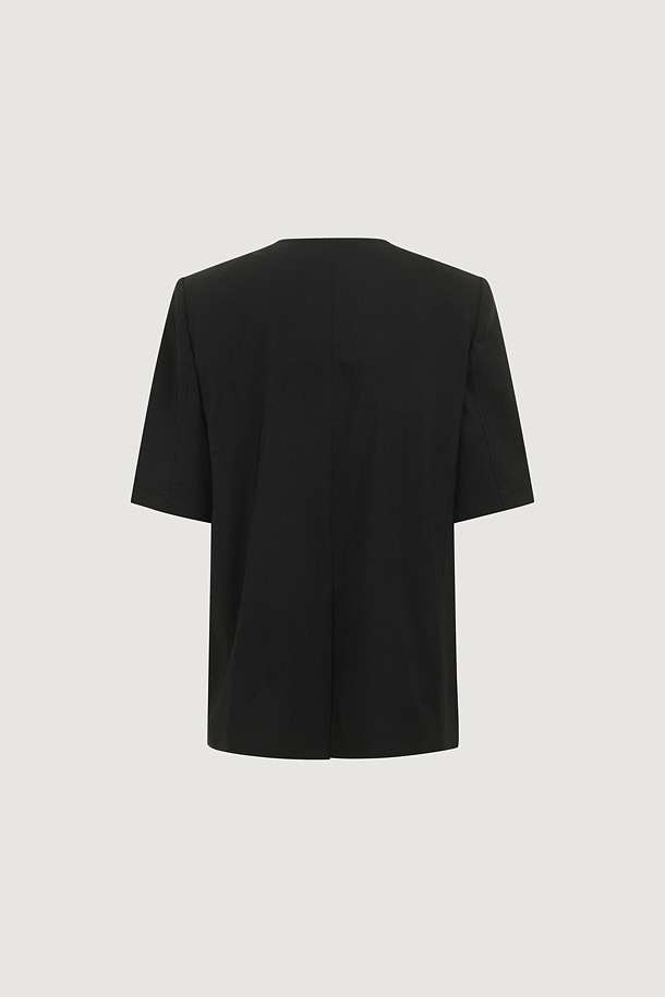 No-Color V Neck Short Sleeve Poly Jacket (black)
