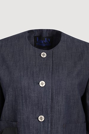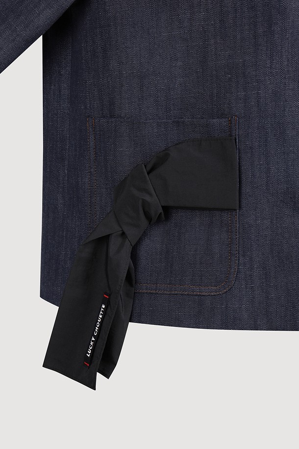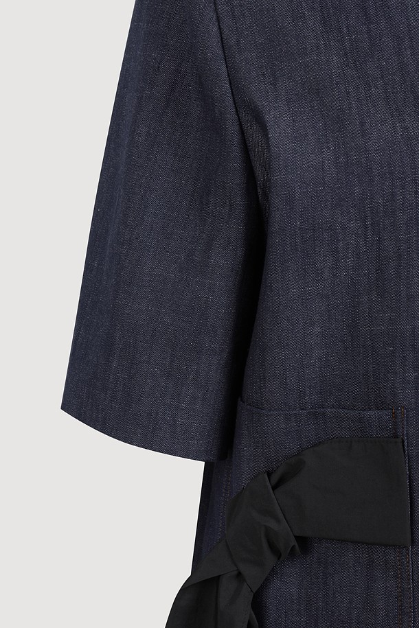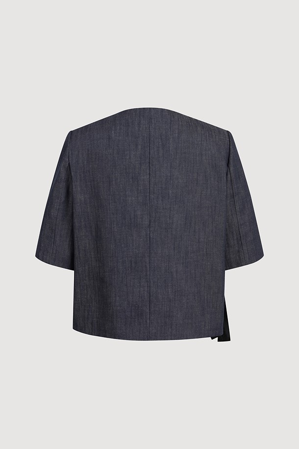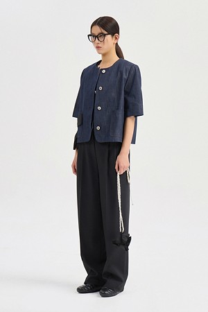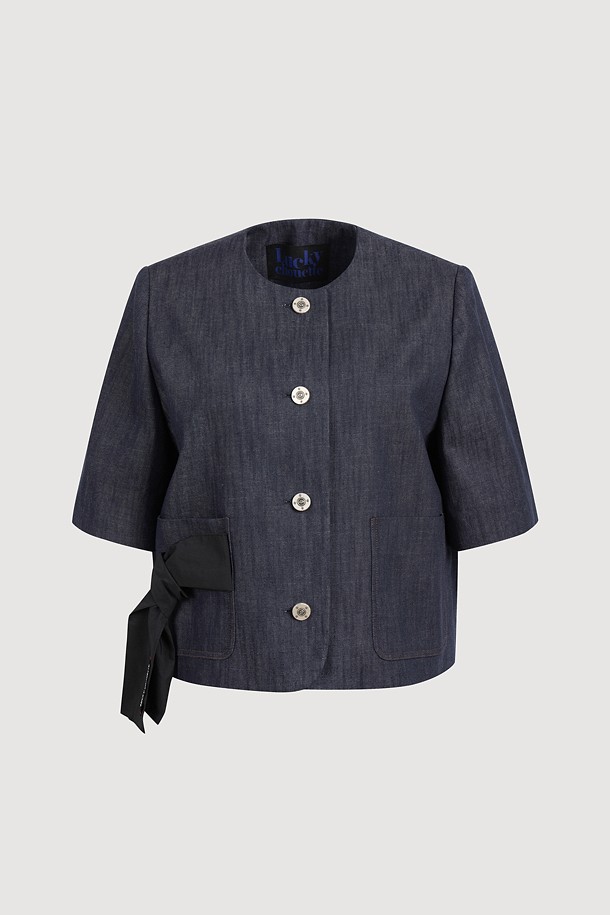 Round Neck Ribbon Point Short Sleeve Jacket (dark blue)